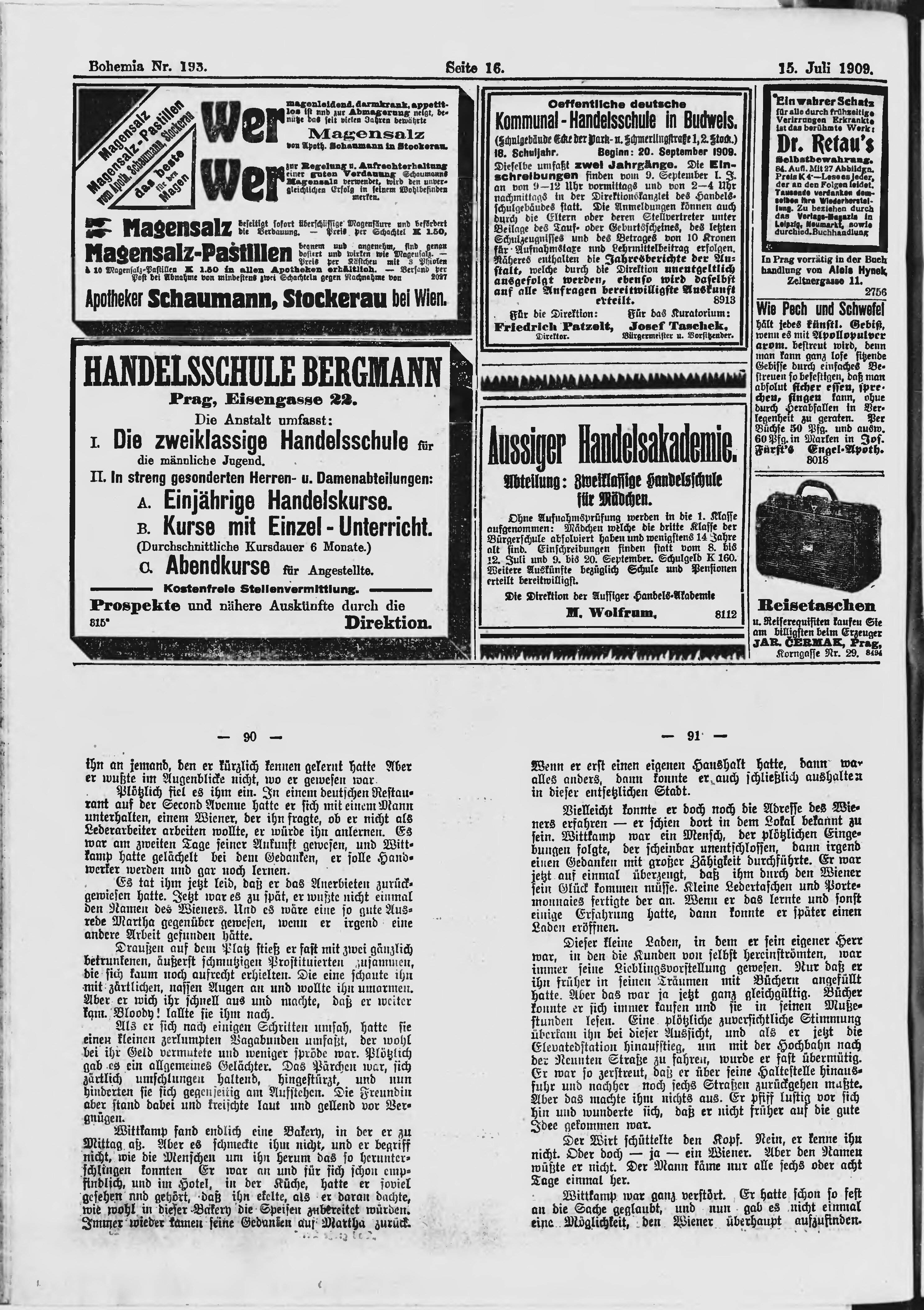 * Datum vydání výtisku: 15.7.1909 Číslo výtisku: 193 Poznámky k výtisku: ranní vydání;