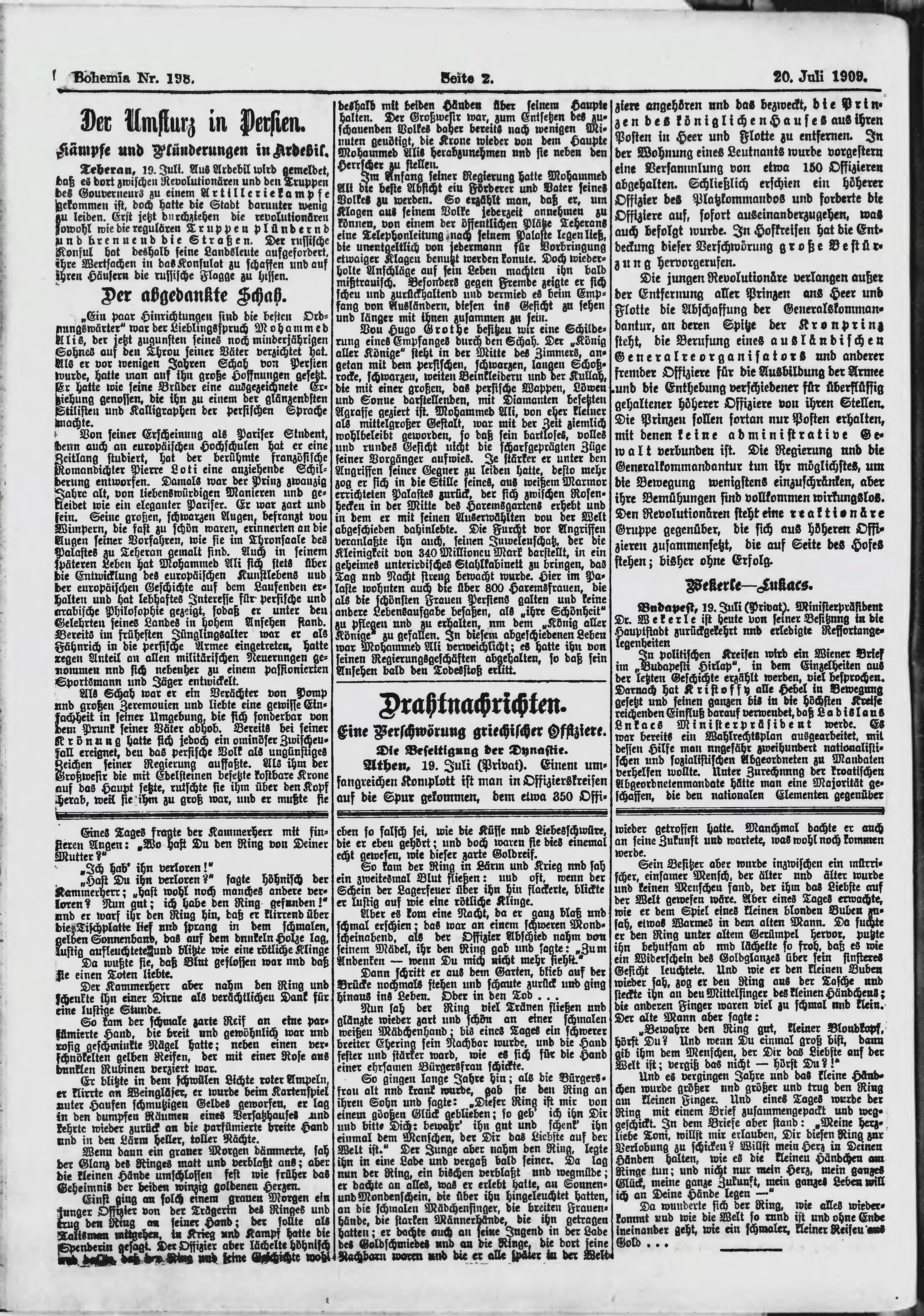 * Datum vydání výtisku: 20.7.1909 Číslo výtisku: 198 Poznámky k výtisku: ranní vydání;