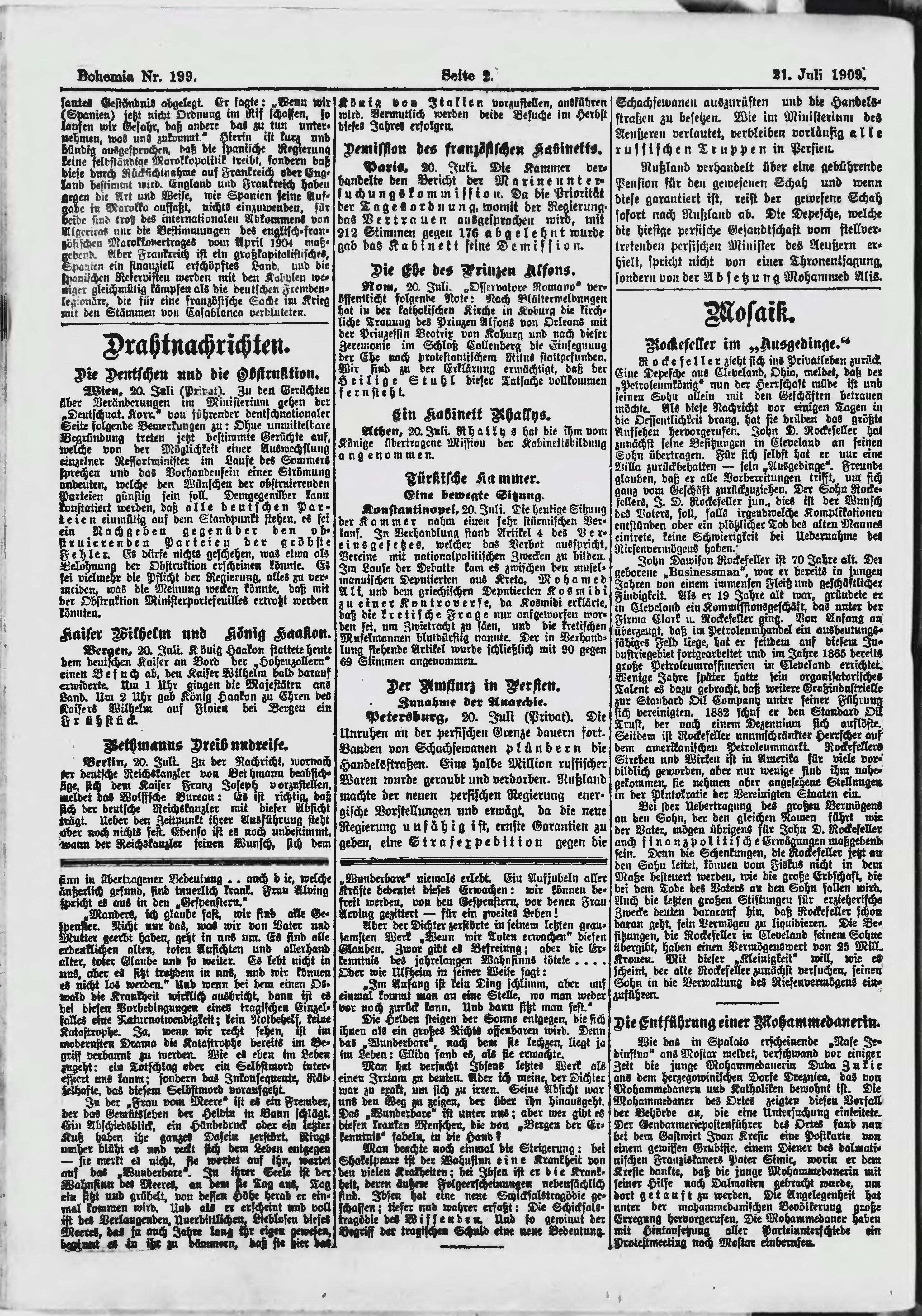 * Datum vydání výtisku: 21.7.1909 Číslo výtisku: 199 Poznámky k výtisku: ranní vydání;