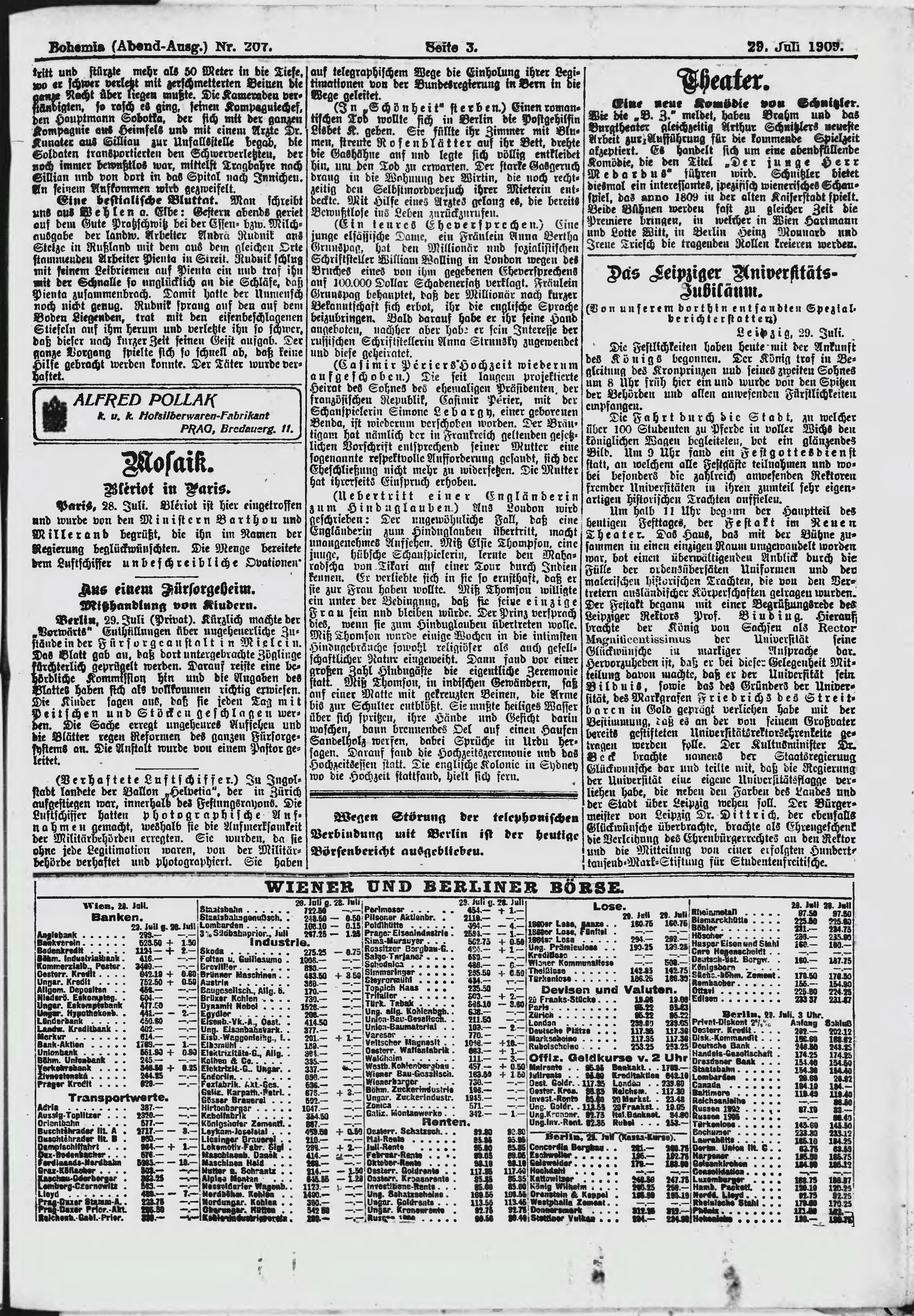 * Datum vydání výtisku: 29.7.1909 Číslo výtisku: 207 Poznámky k výtisku: večerní vydání;