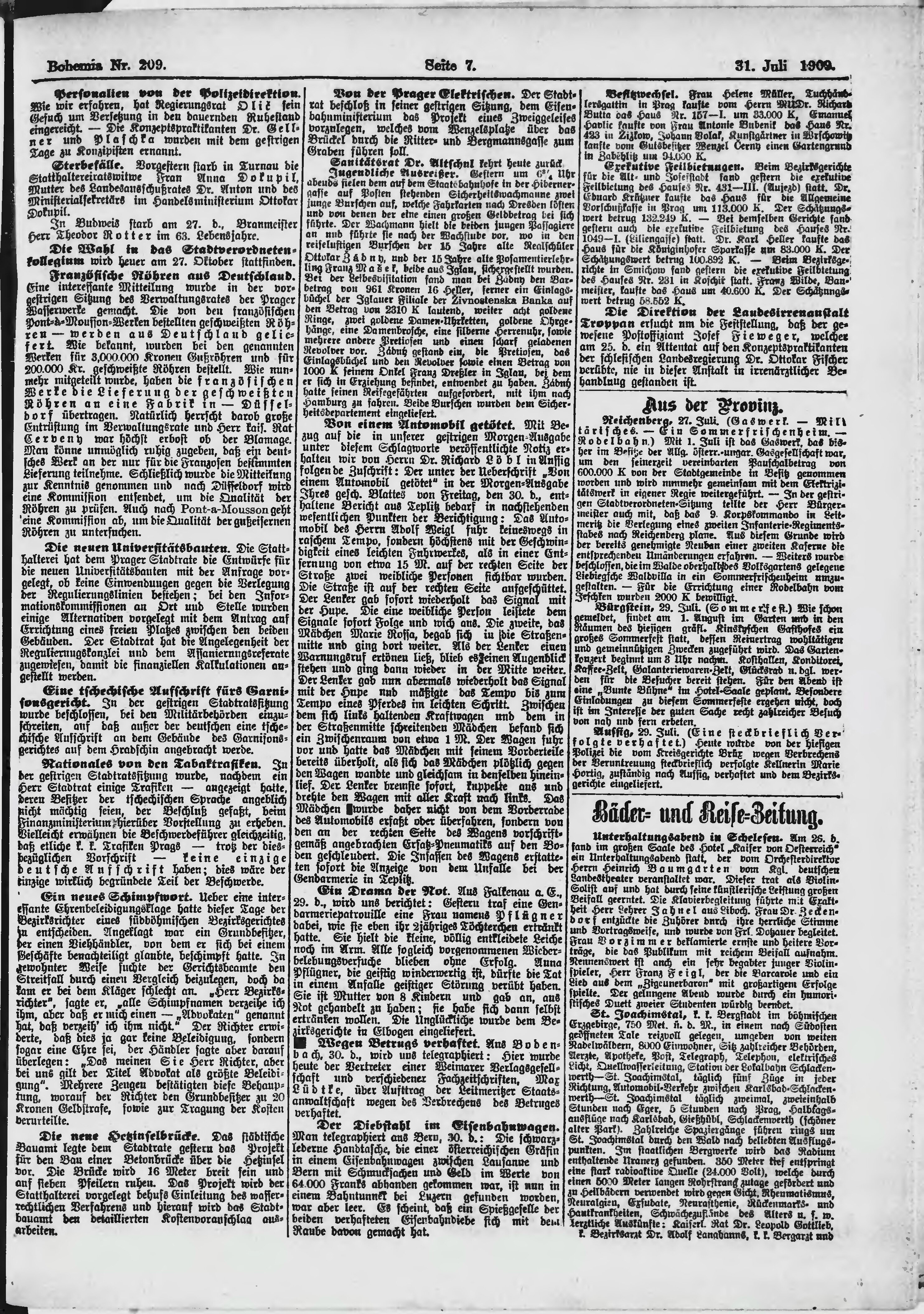 * Datum vydání výtisku: 31.7.1909 Číslo výtisku: 209 Poznámky k výtisku: ranní vydání;