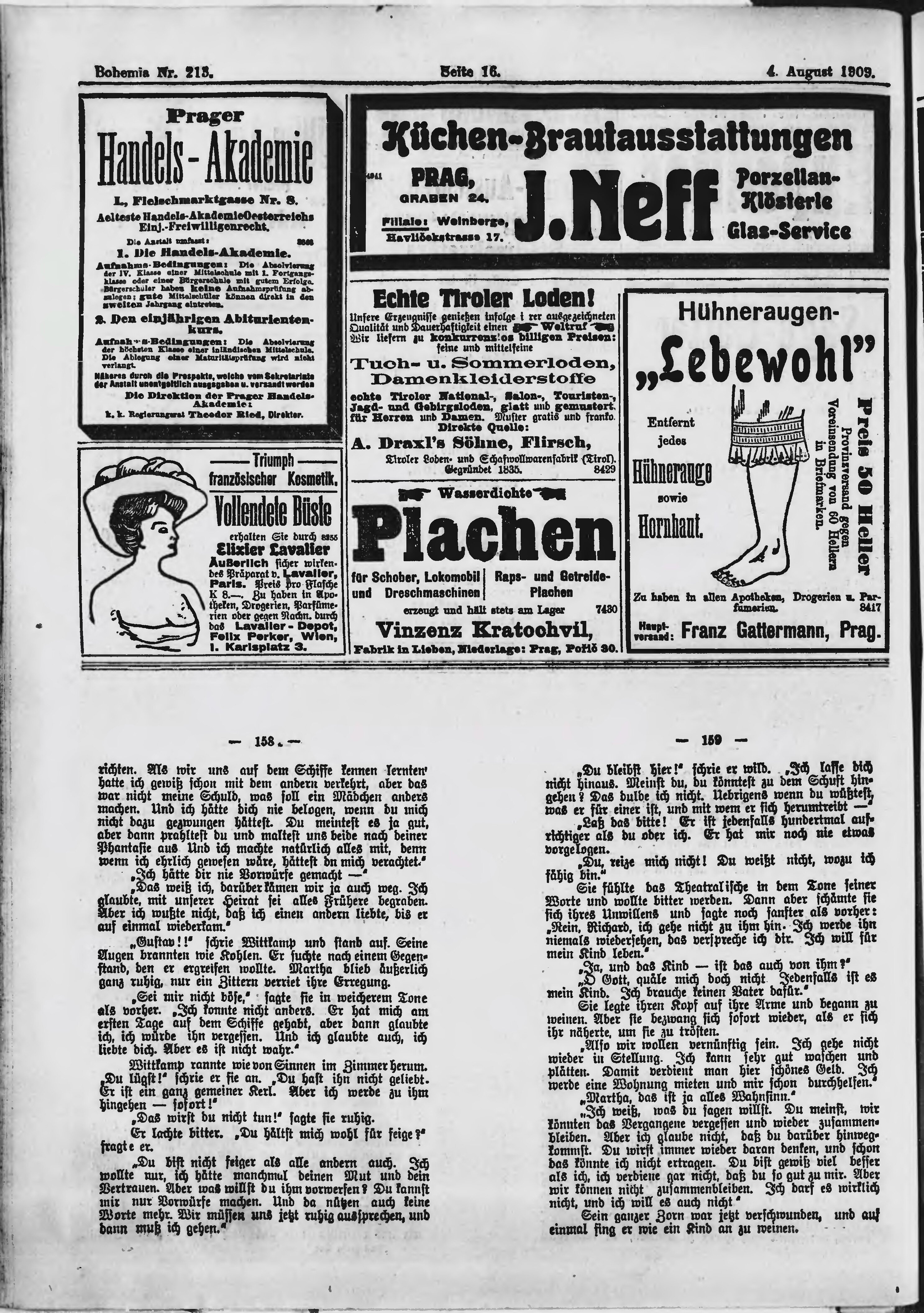 * Datum vydání výtisku: 4.8.1909 Číslo výtisku: 213 Poznámky k výtisku: ranní vydání;