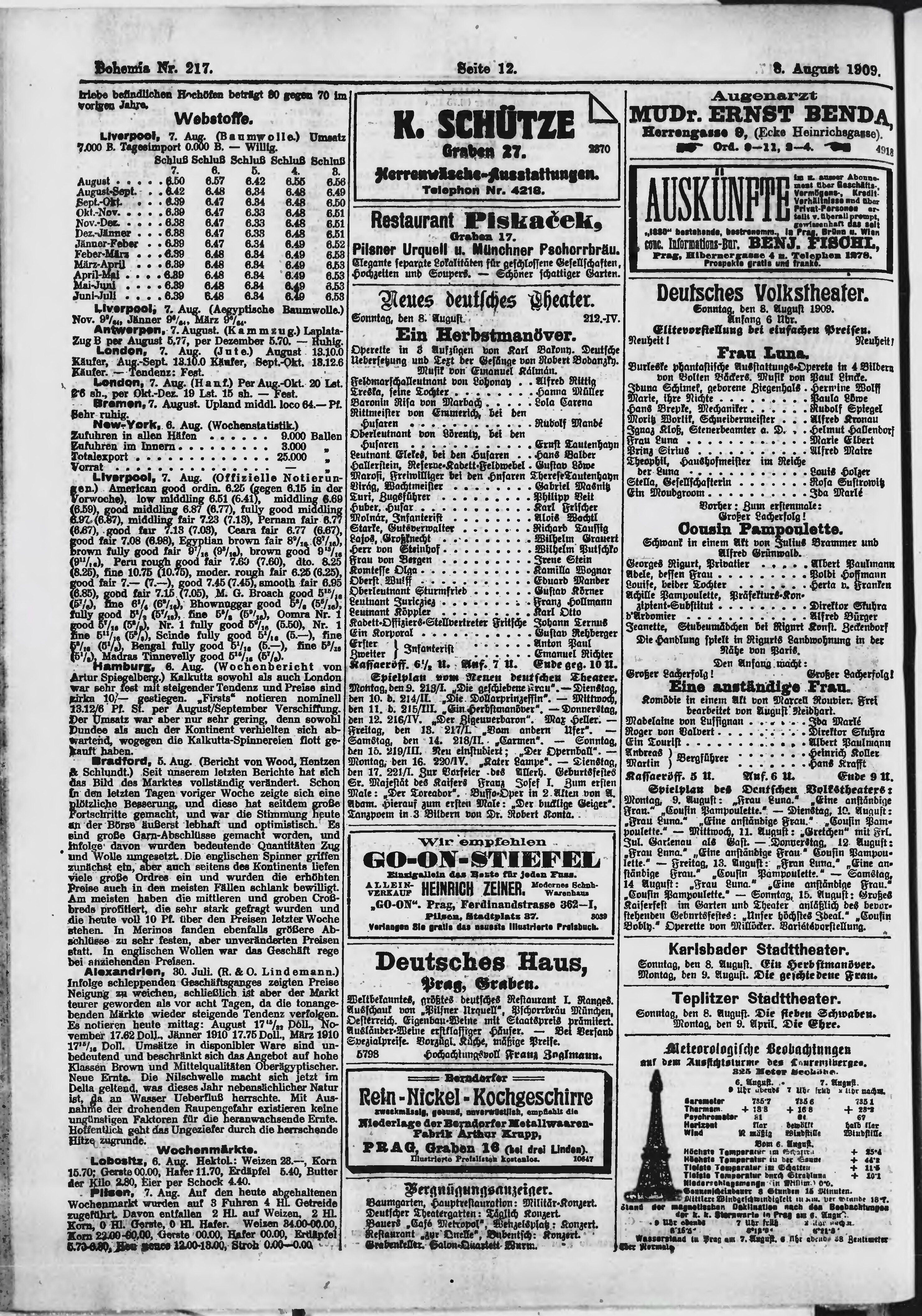 * Datum vydání výtisku: 8.8.1909 Číslo výtisku: 217 Poznámky k výtisku: ranní vydání;