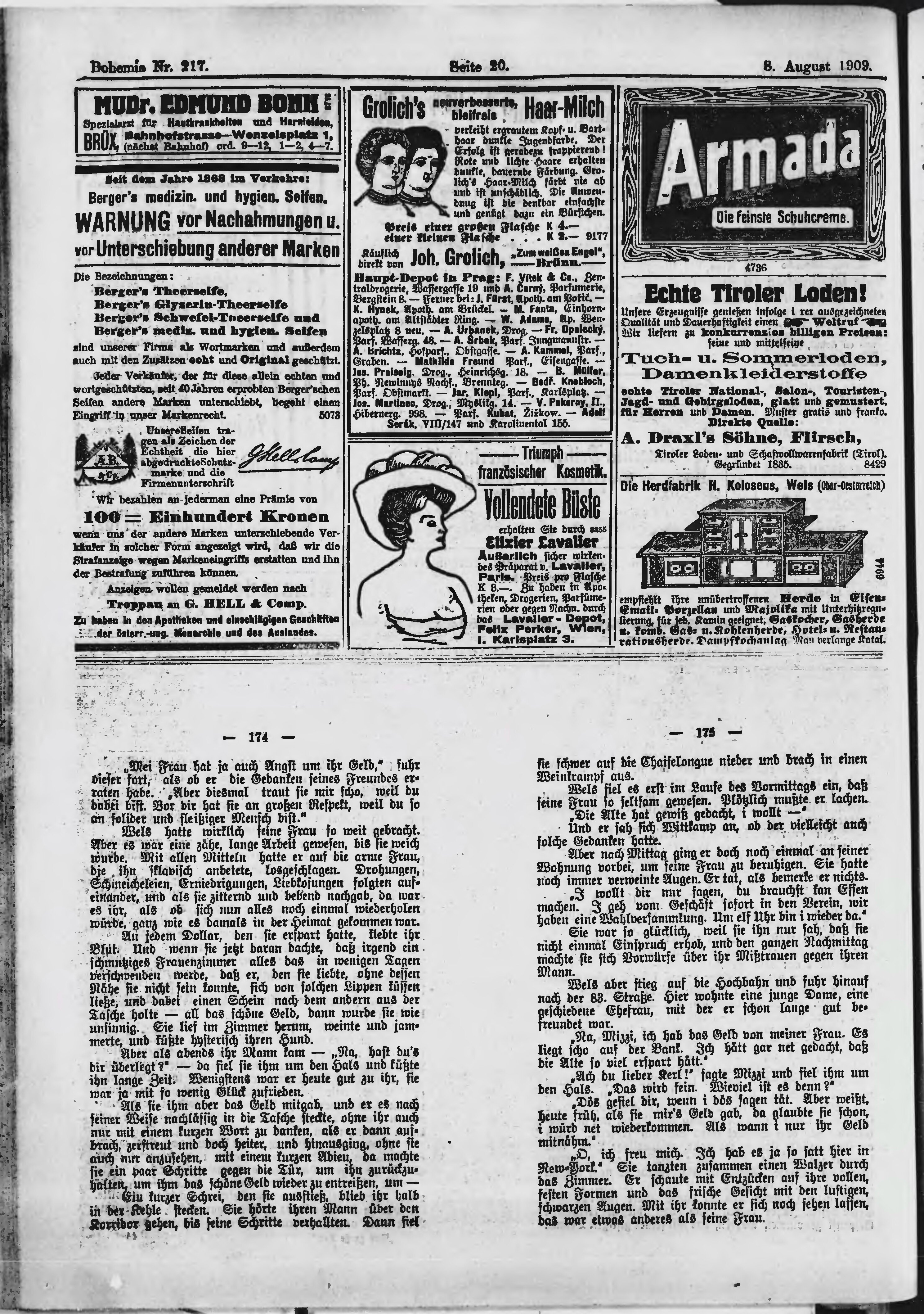 * Datum vydání výtisku: 8.8.1909 Číslo výtisku: 217 Poznámky k výtisku: ranní vydání;