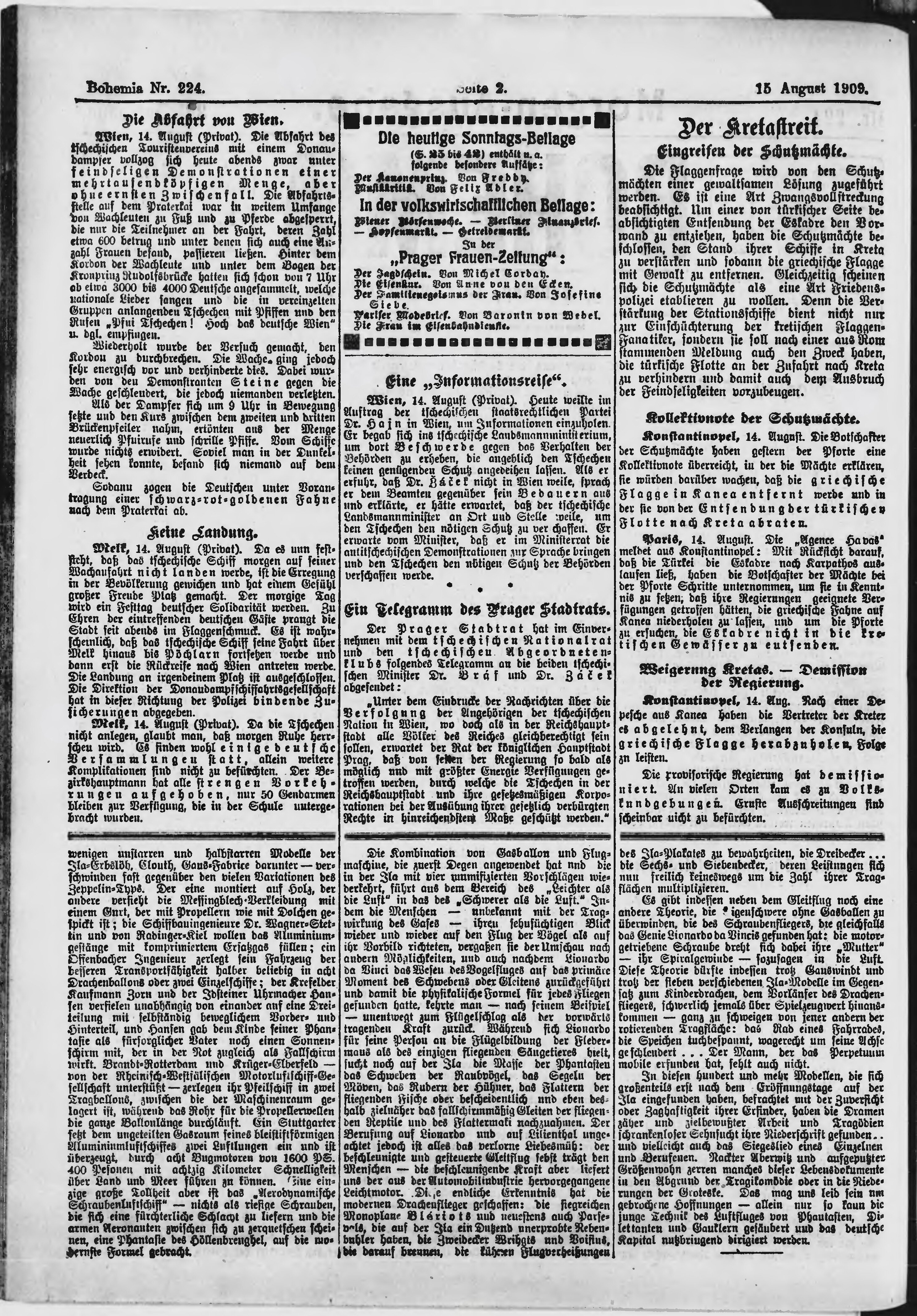 * Datum vydání výtisku: 15.8.1909 Číslo výtisku: 224 Poznámky k výtisku: ranní vydání;