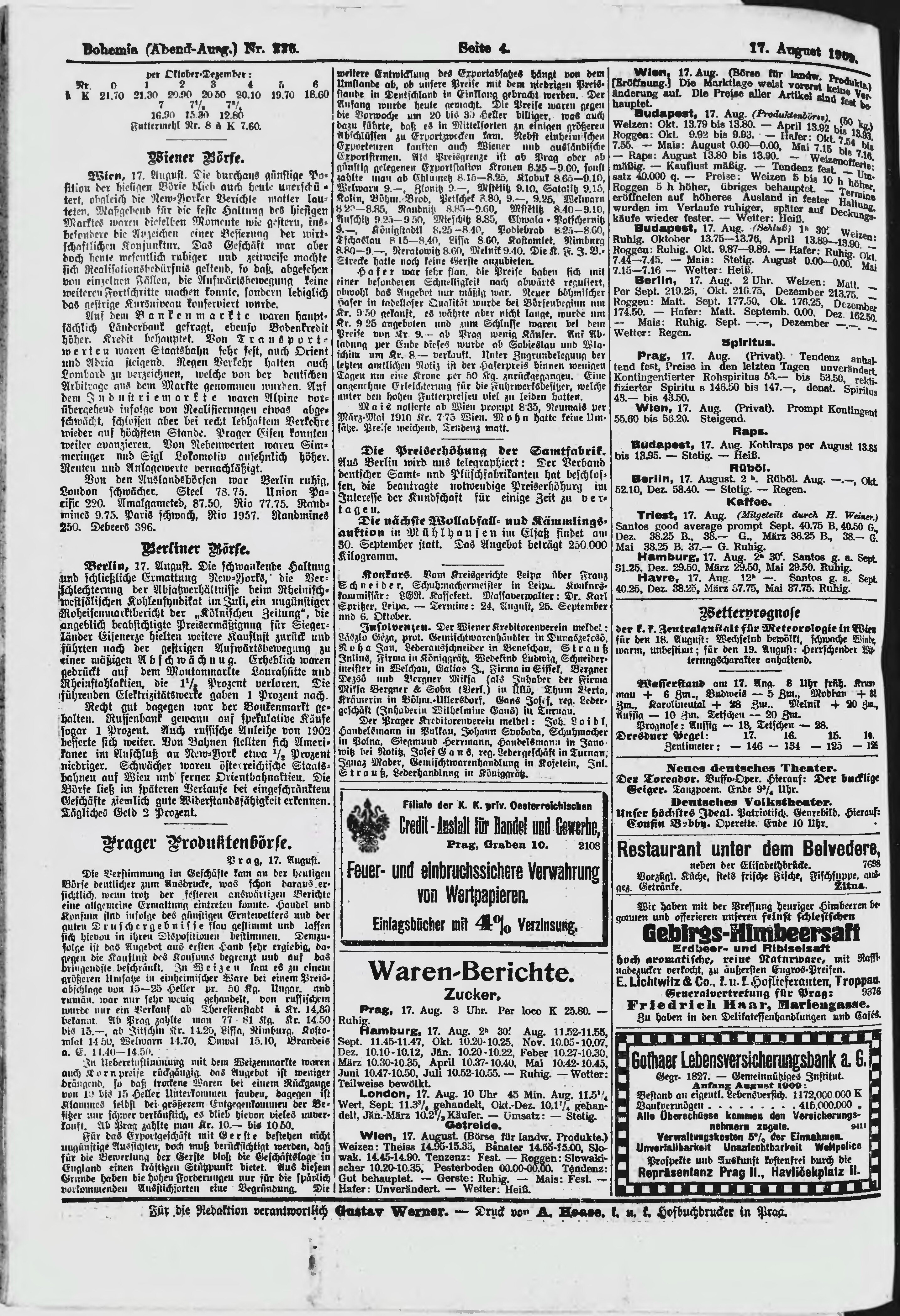 * Datum vydání výtisku: 17.8.1909 Číslo výtisku: 226 Poznámky k výtisku: večerní vydání;