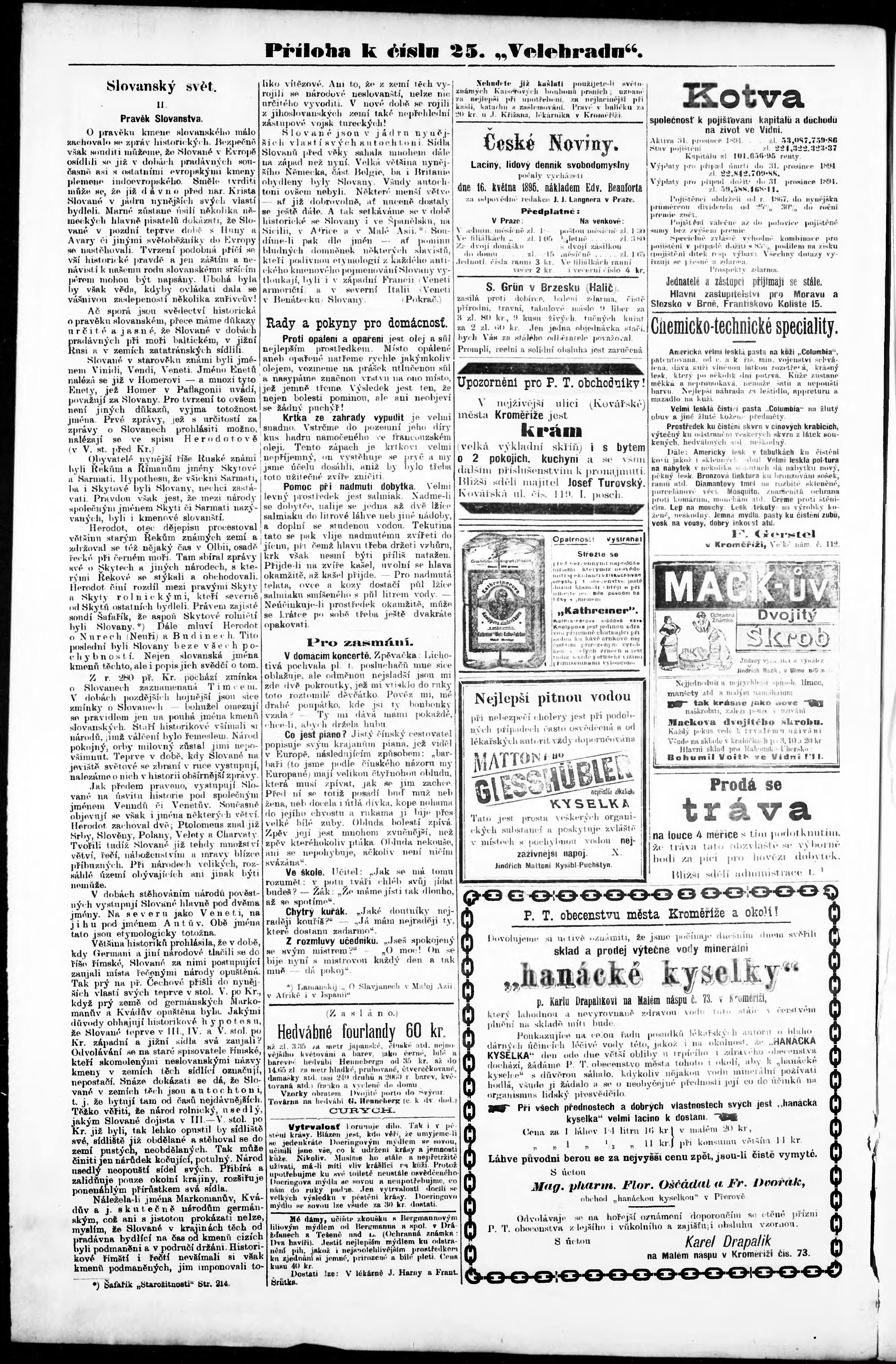 * Datum vydání výtisku: 23.6.1895 Číslo výtisku: 25