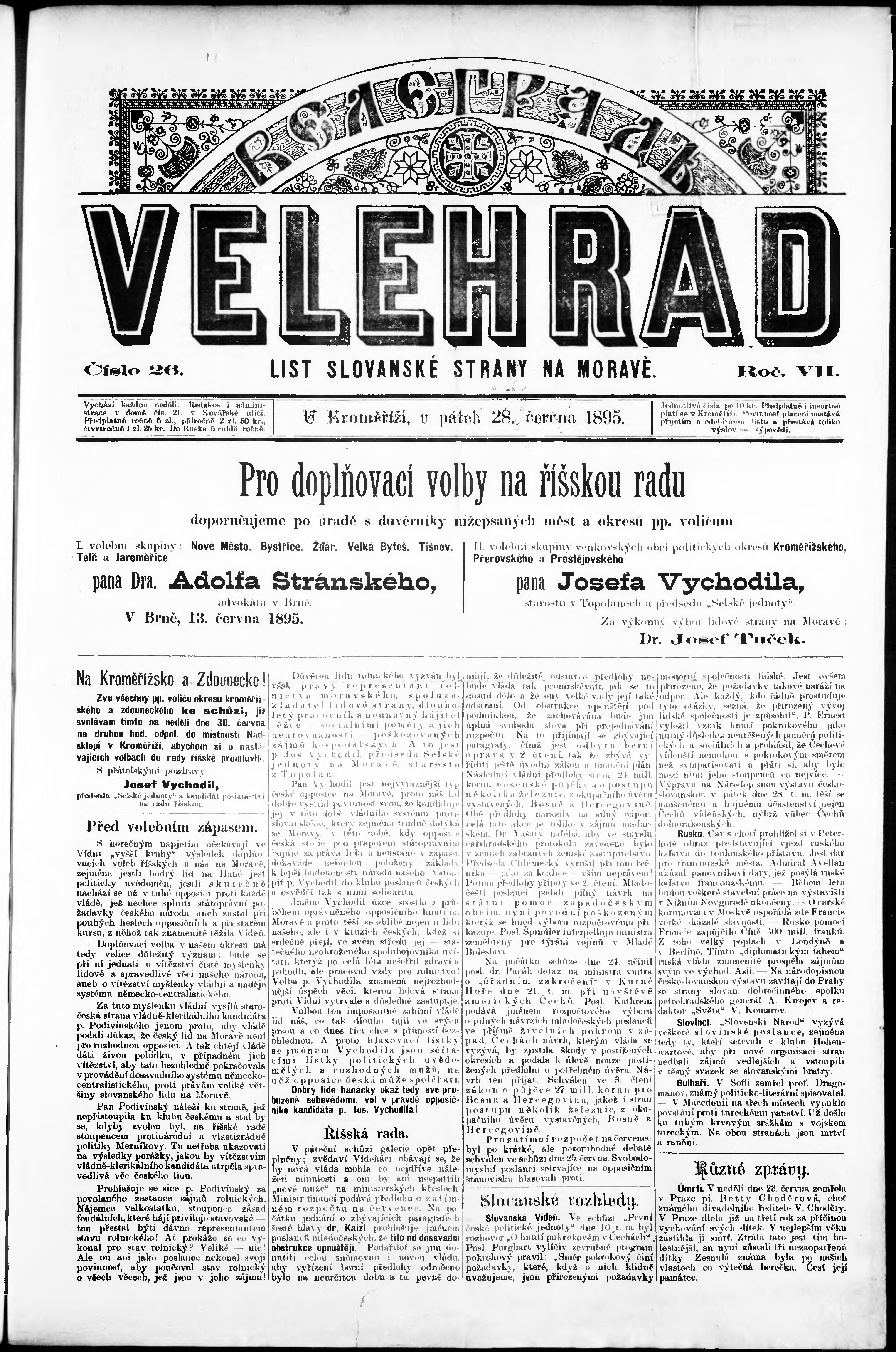 * Datum vydání výtisku: 28.6.1895 Číslo výtisku: 26