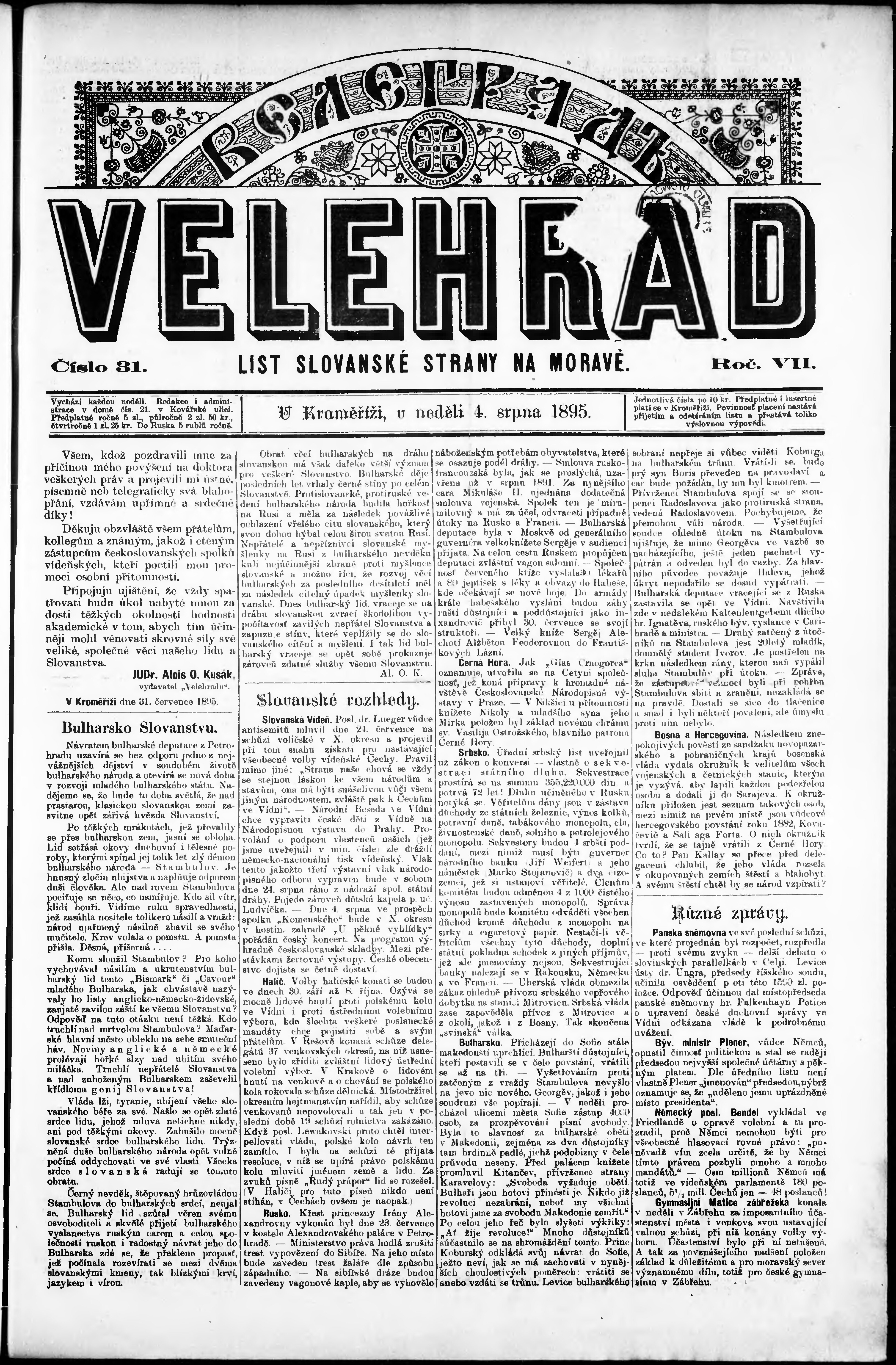 * Datum vydání výtisku: 4.8.1895 Číslo výtisku: 31