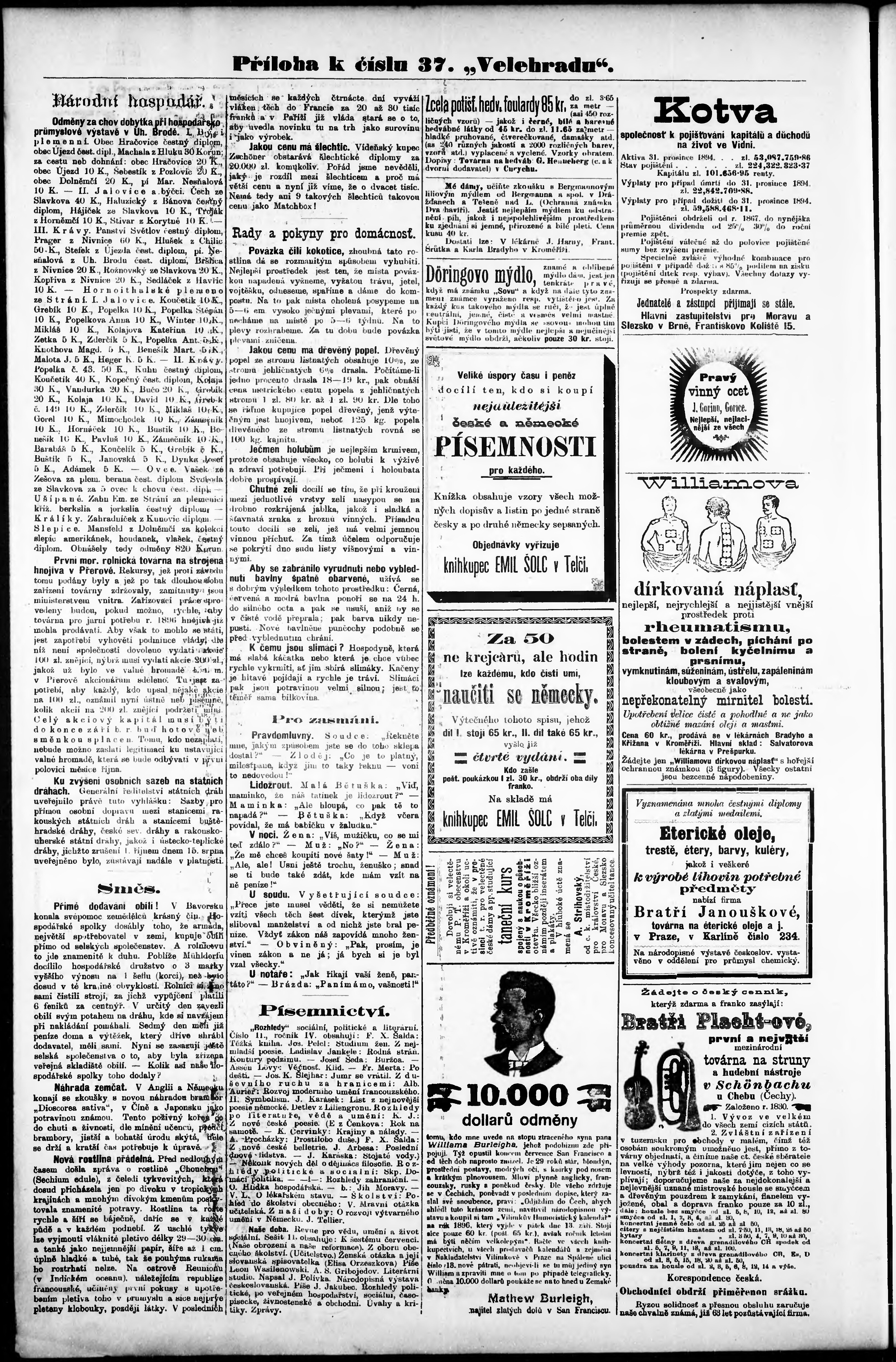* Datum vydání výtisku: 15.9.1895 Číslo výtisku: 37