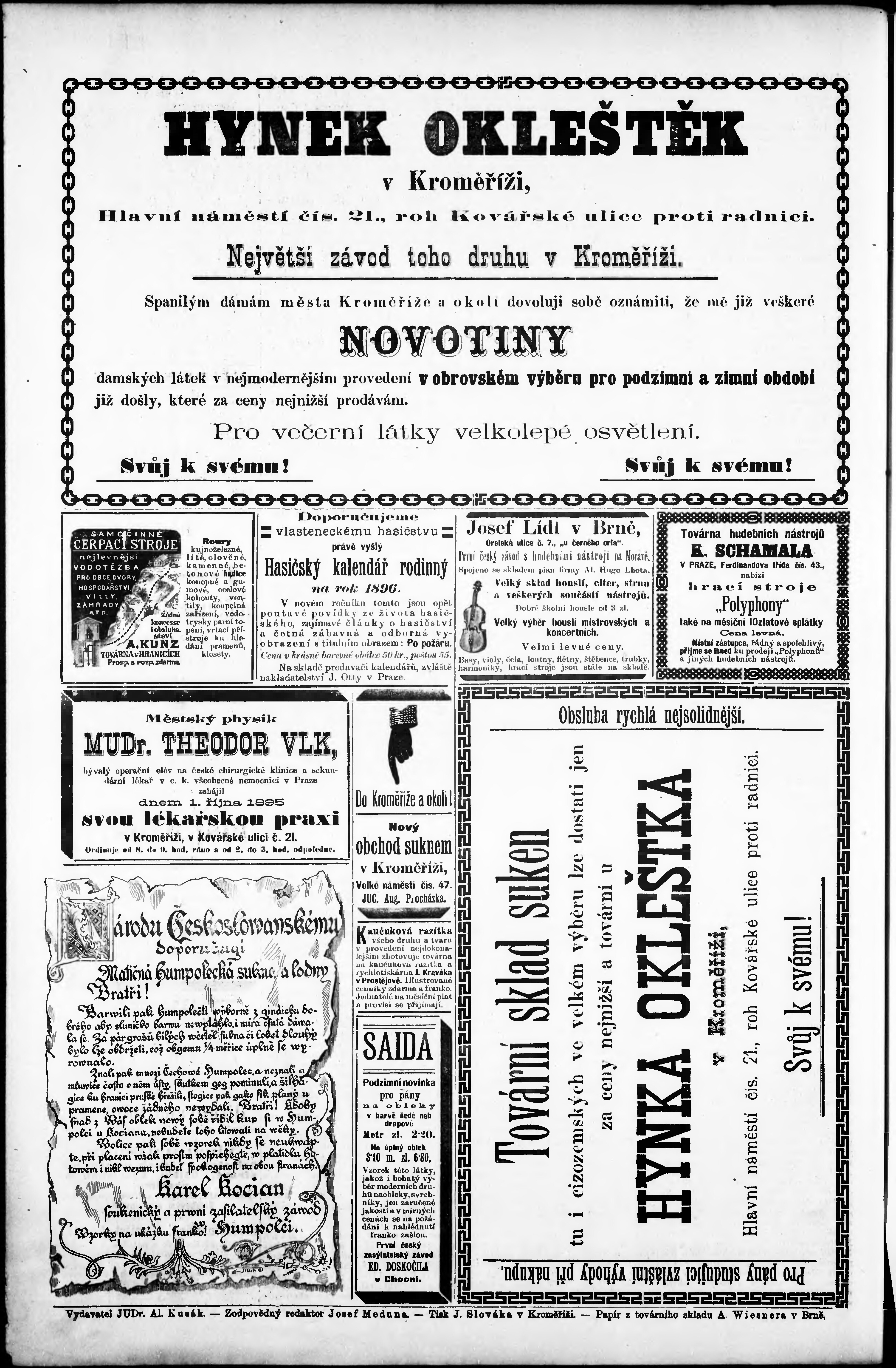 * Datum vydání výtisku: 20.10.1895 Číslo výtisku: 42