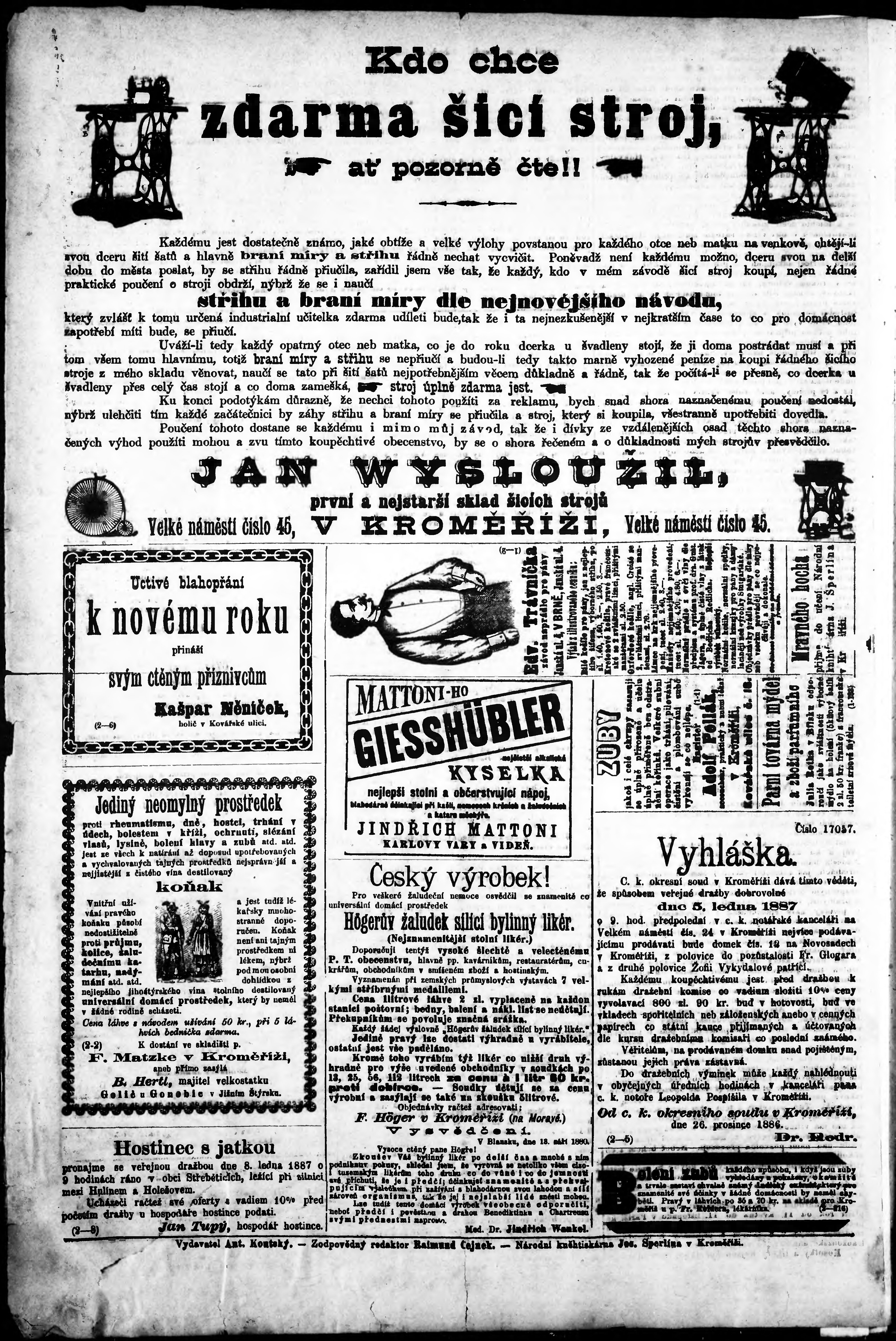 * Datum vydání výtisku: 4.1.1887 Číslo výtisku: redakční exemplář Poznámky k výtisku: po konfiskaci druhé vydání;
