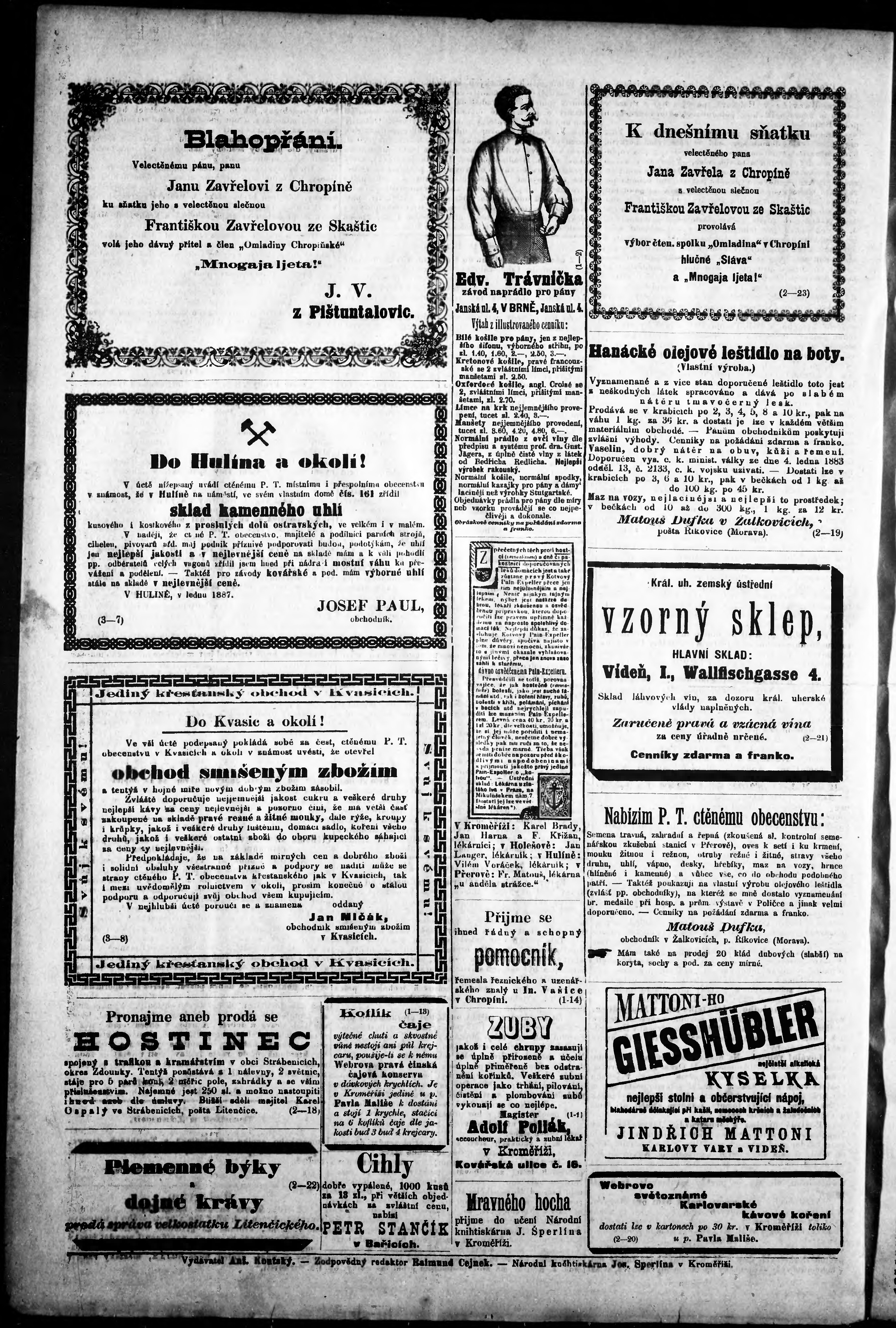 * Datum vydání výtisku: 8.2.1887 Číslo výtisku: 11