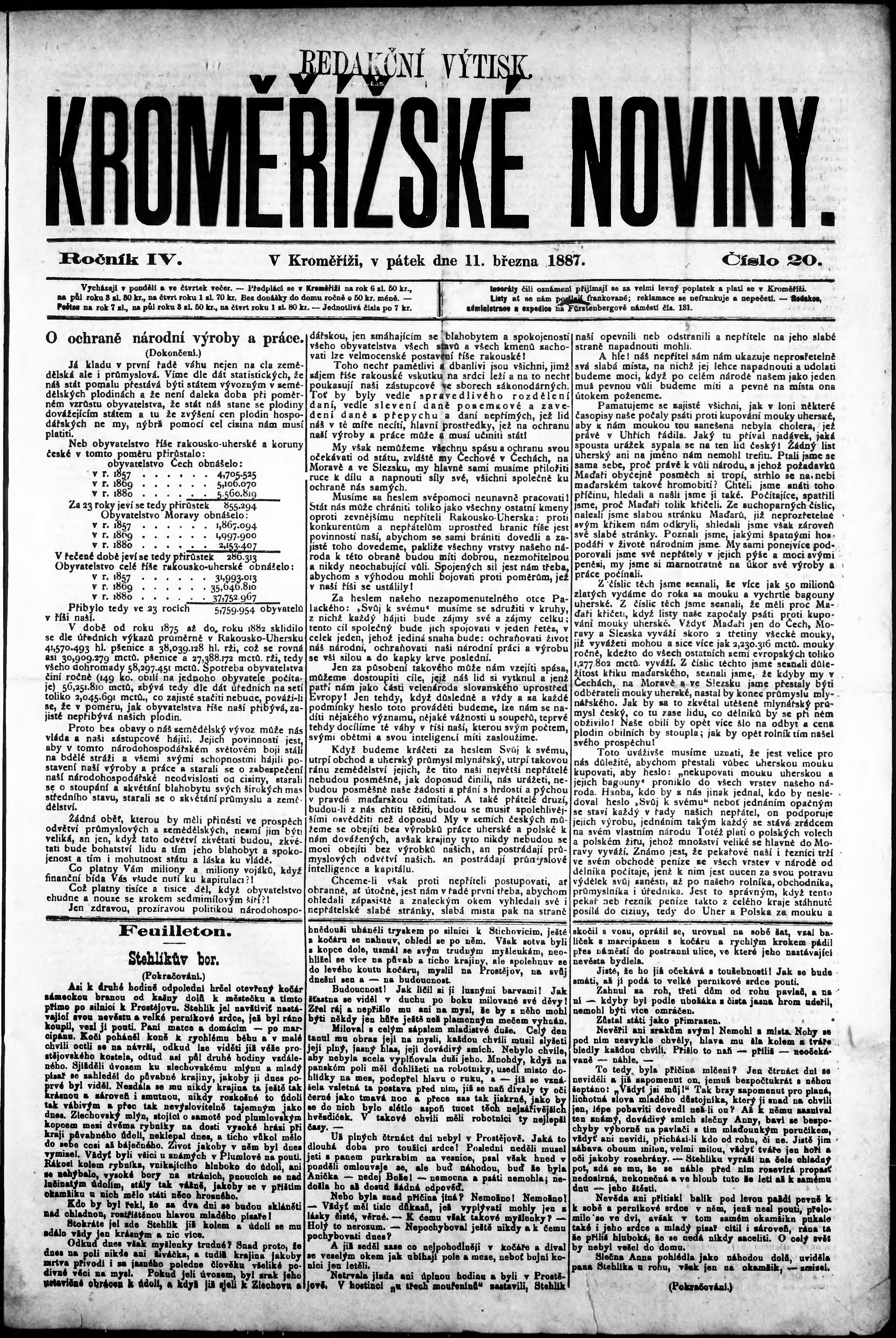 * Datum vydání výtisku: 11.3.1887 Číslo výtisku: 20