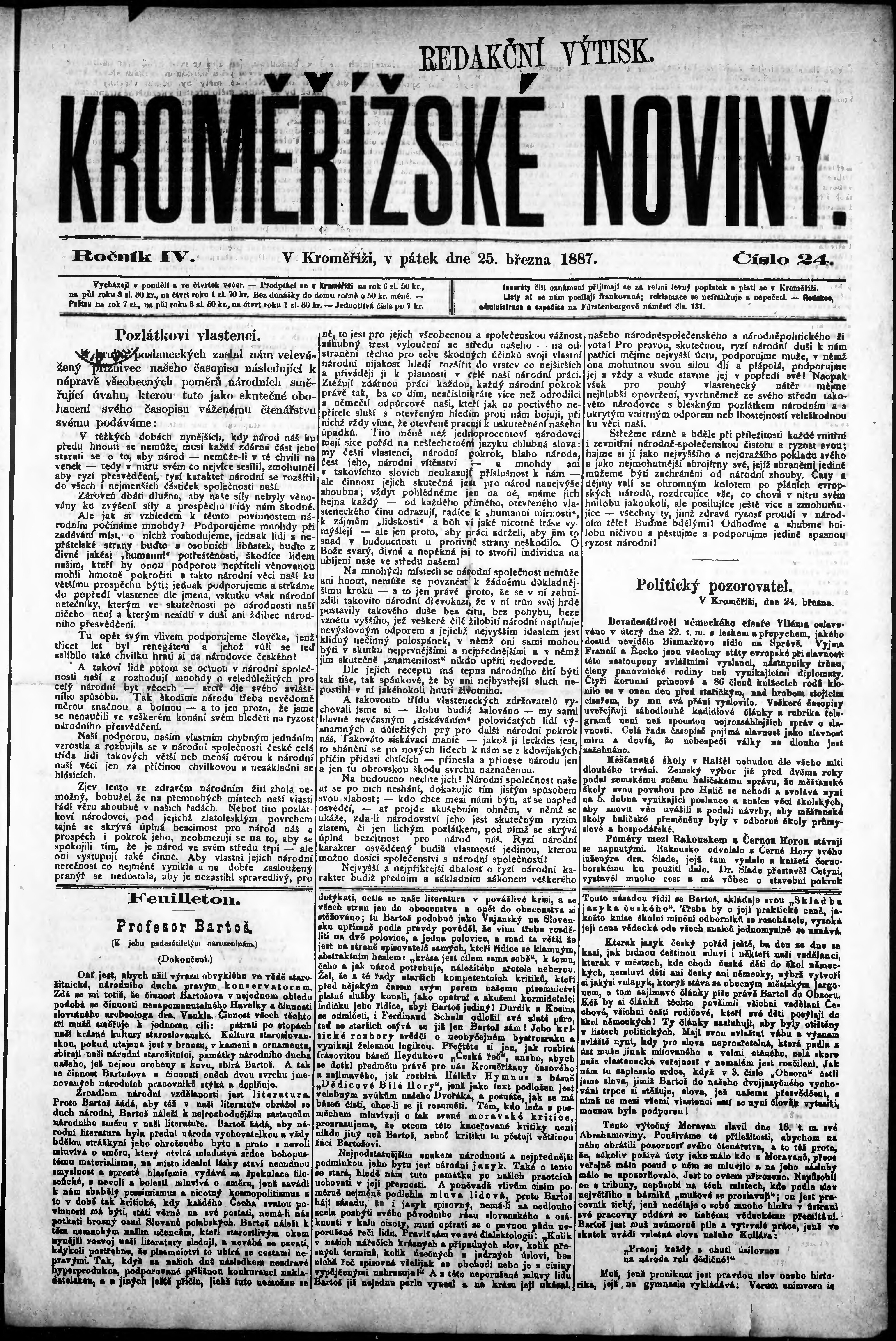 * Datum vydání výtisku: 25.3.1887 Číslo výtisku: 24