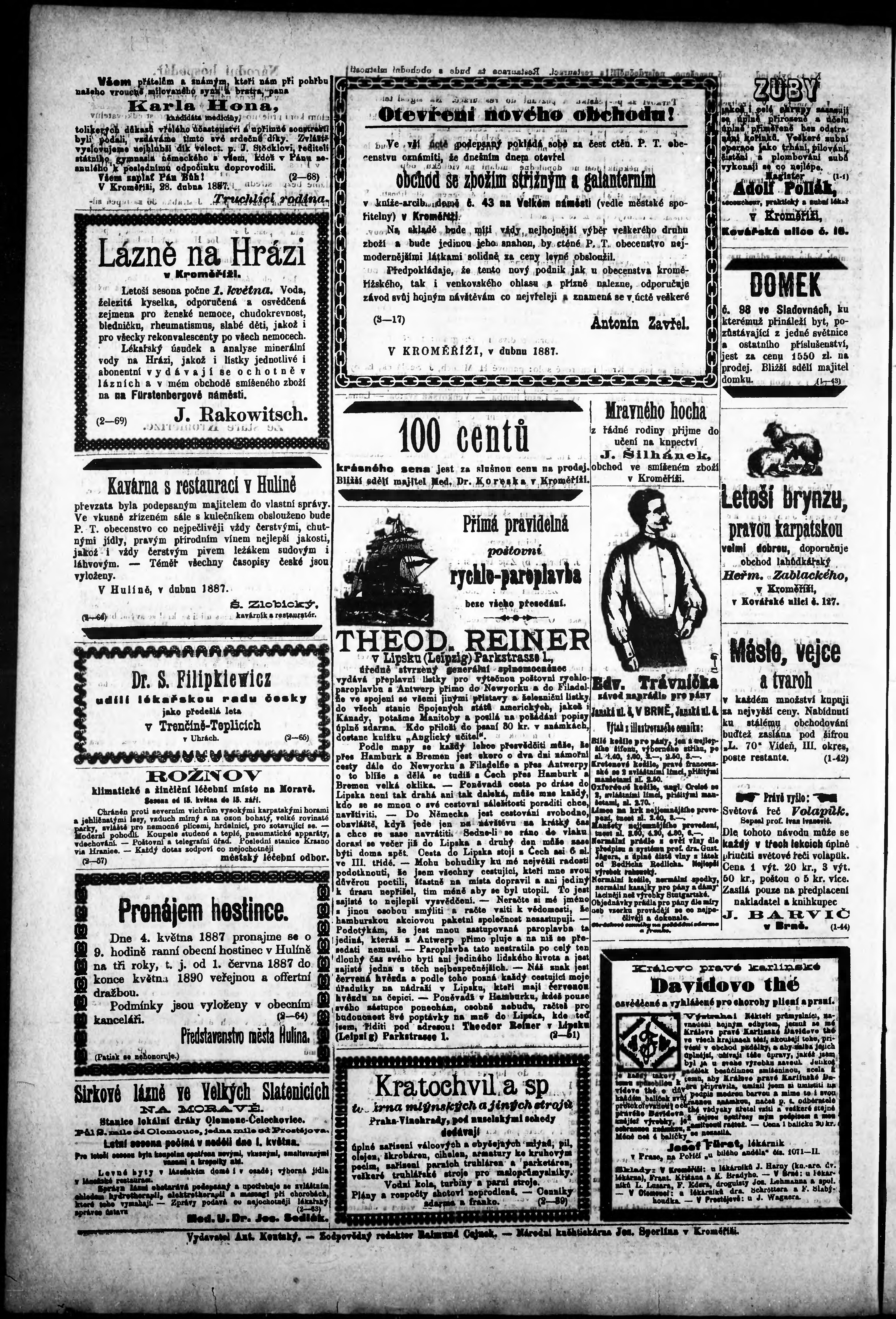 * Datum vydání výtisku: 29.4.1887 Číslo výtisku: 34