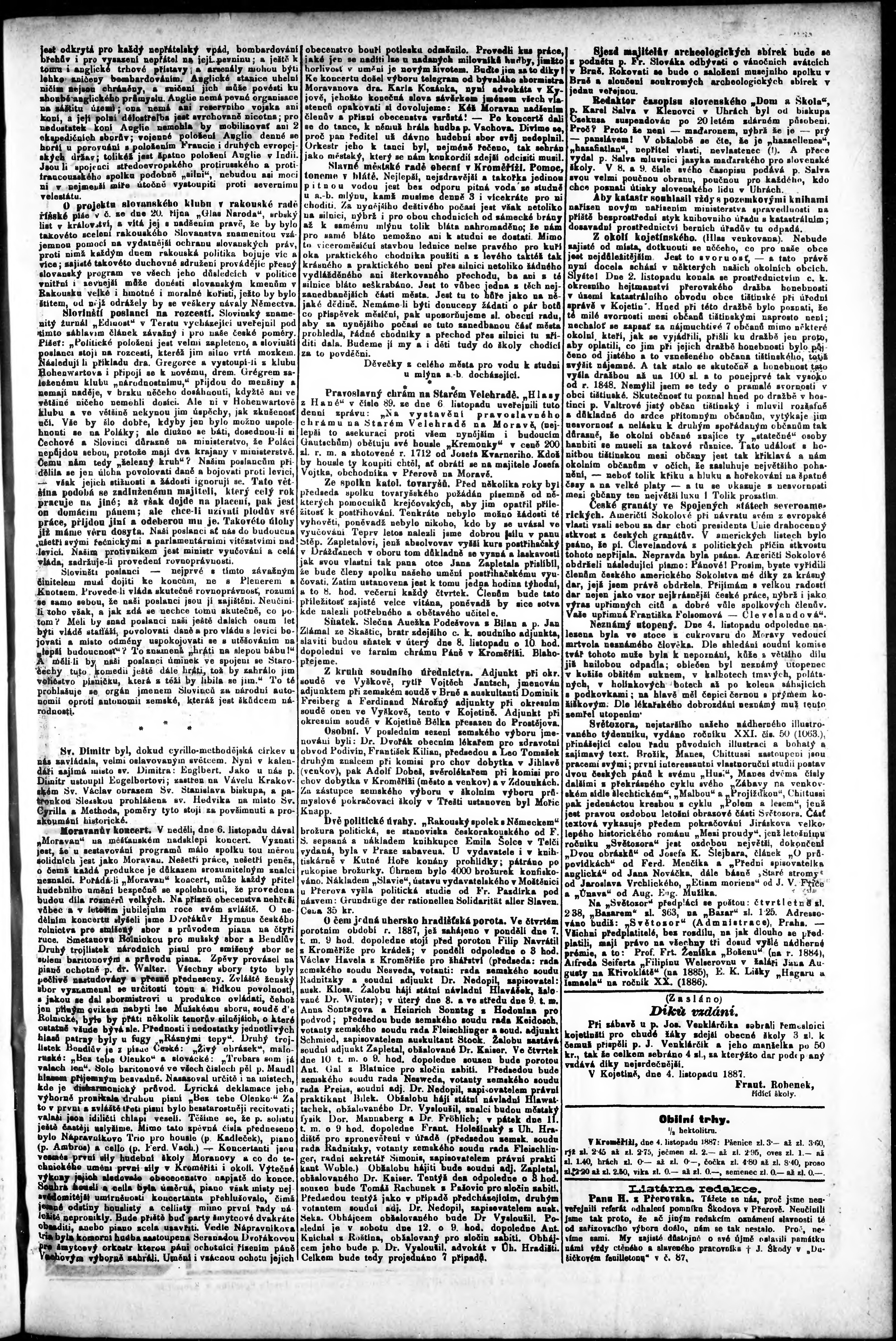 * Datum vydání výtisku: 8.11.1887 Číslo výtisku: 89