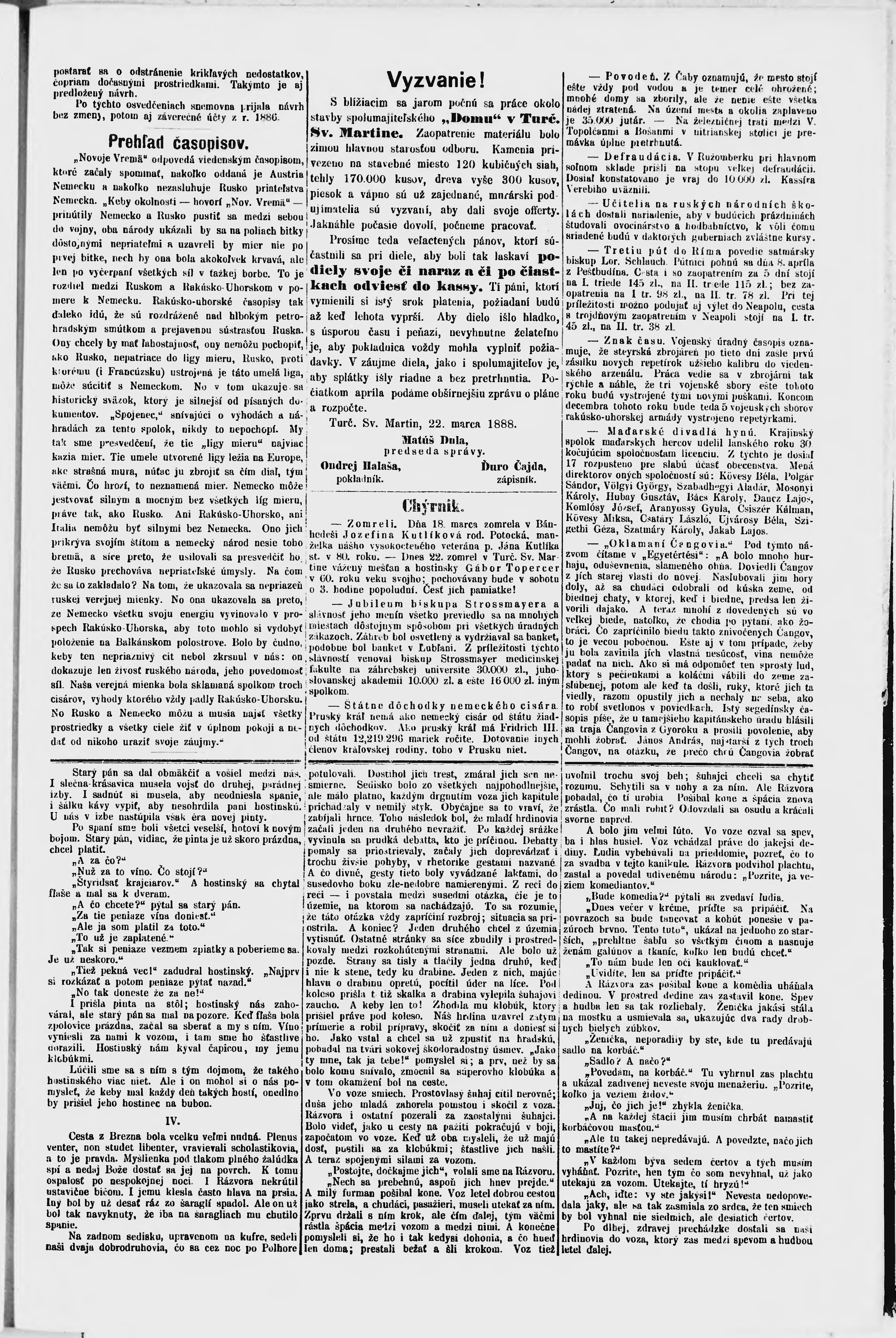 * Datum vydání výtisku: 22.3.1888 Číslo výtisku: 35