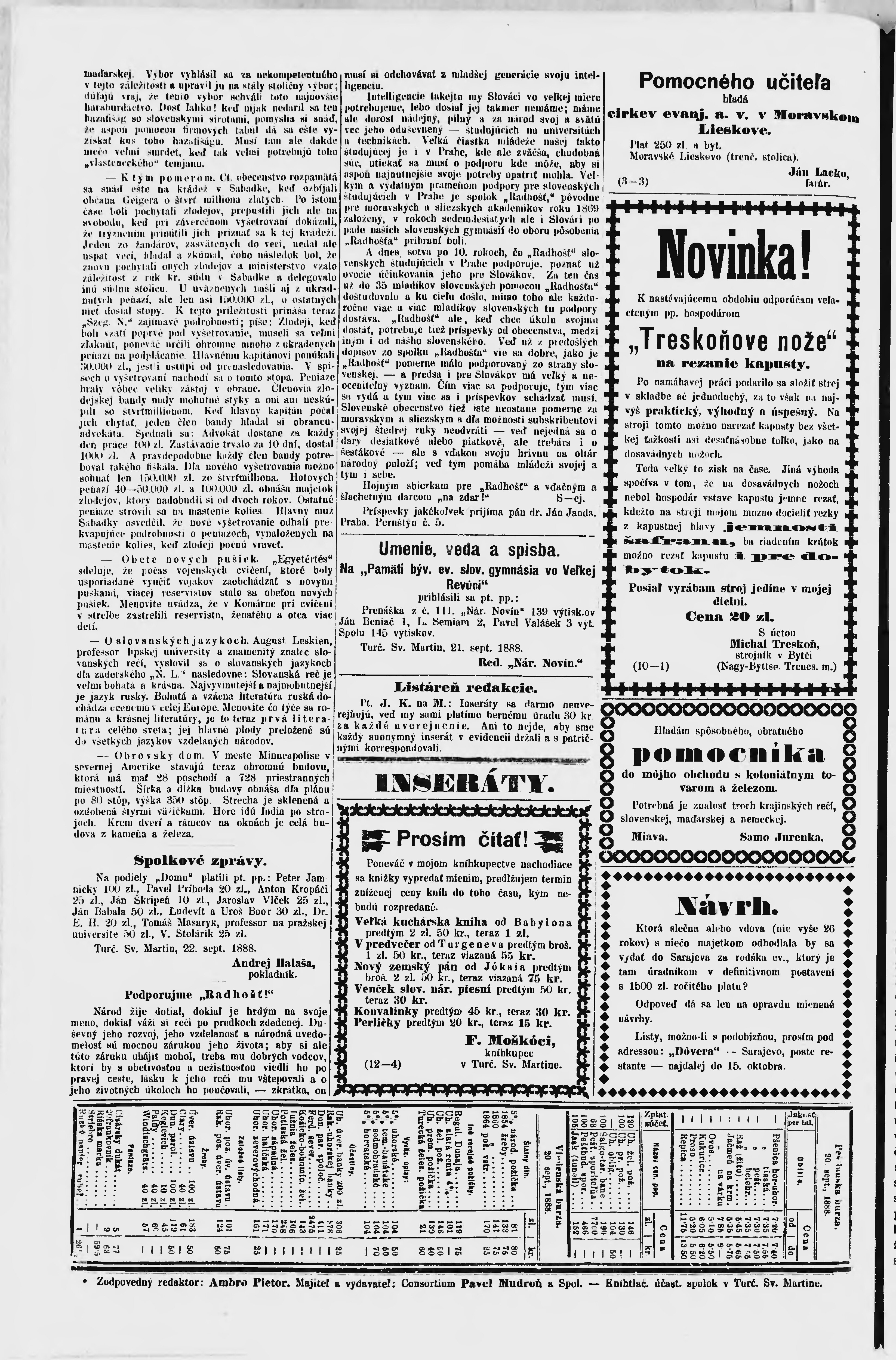 * Datum vydání výtisku: 22.9.1888 Číslo výtisku: 112