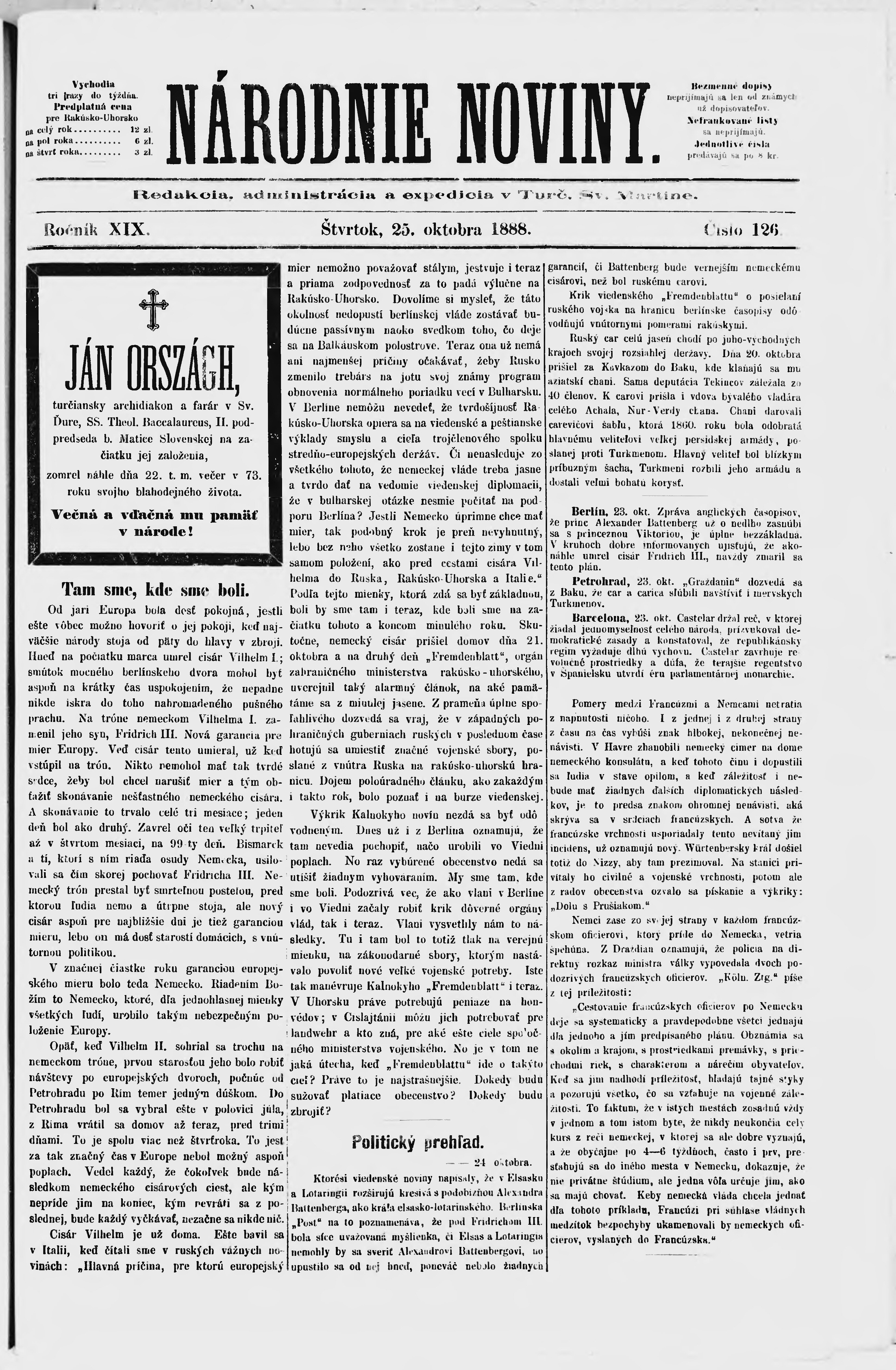 * Datum vydání výtisku: 25.10.1888 Číslo výtisku: 126