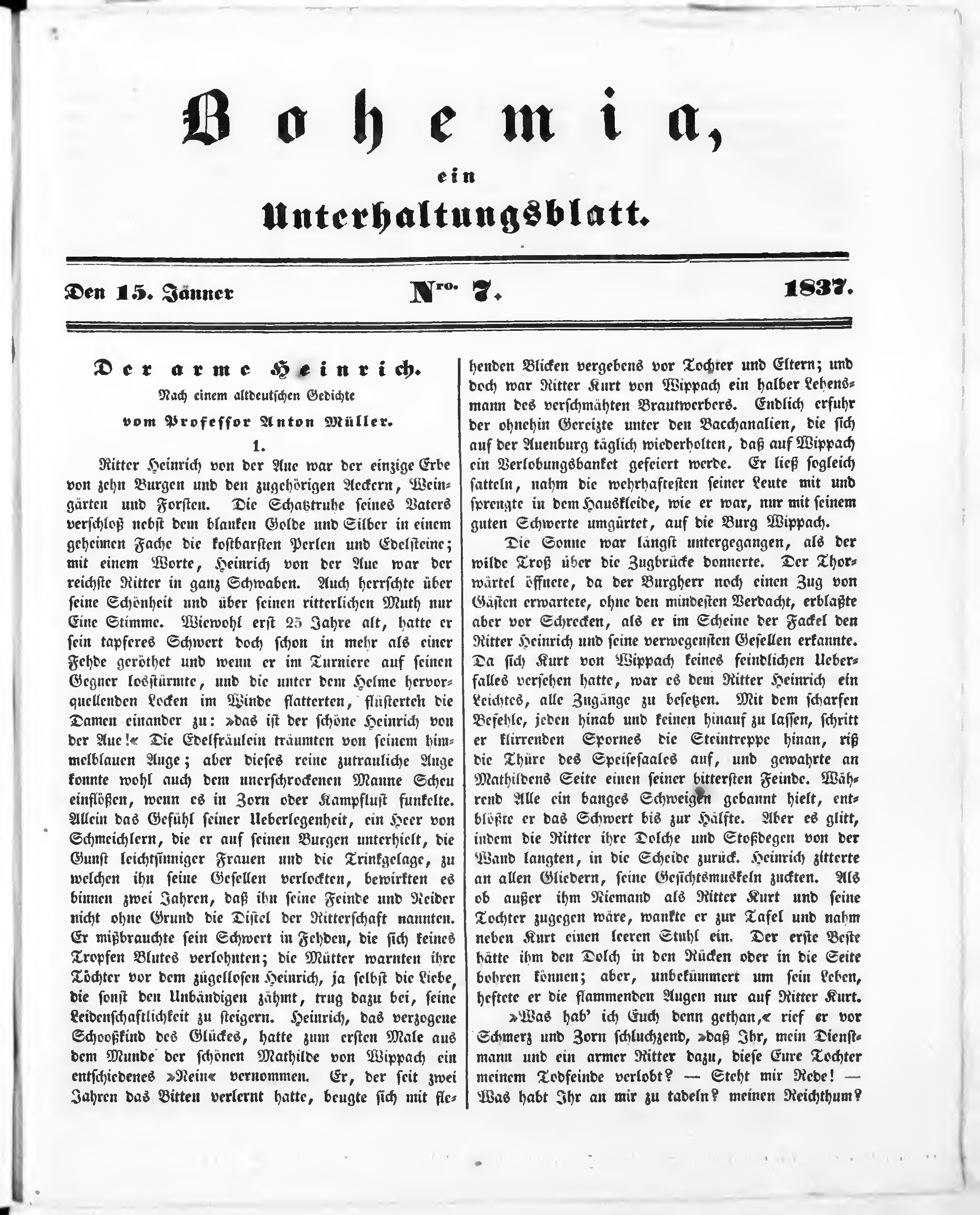 Bohemia, ein Unterhaltungsblatt