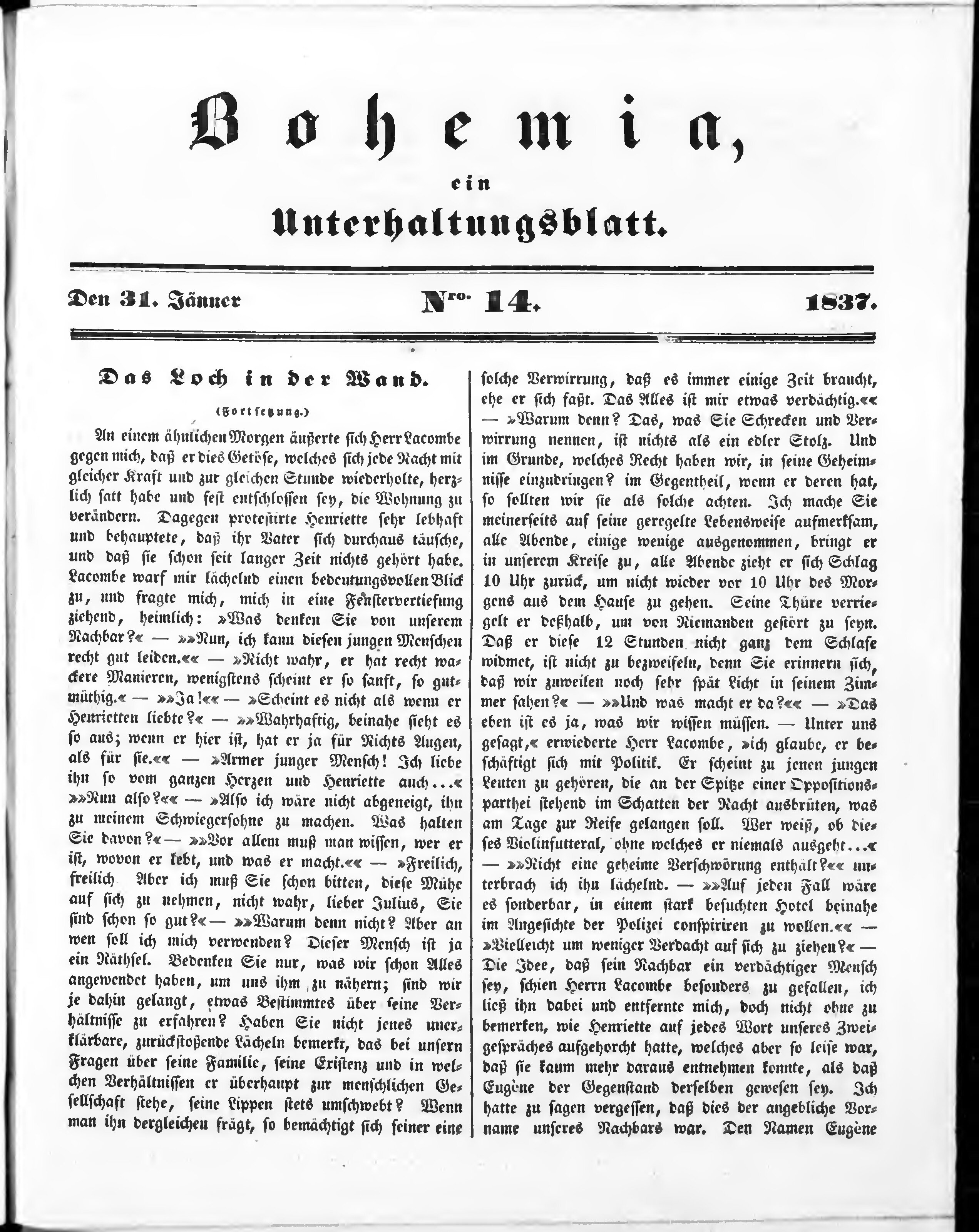 * Datum vydání výtisku: 31.1.1837 Číslo výtisku: 14