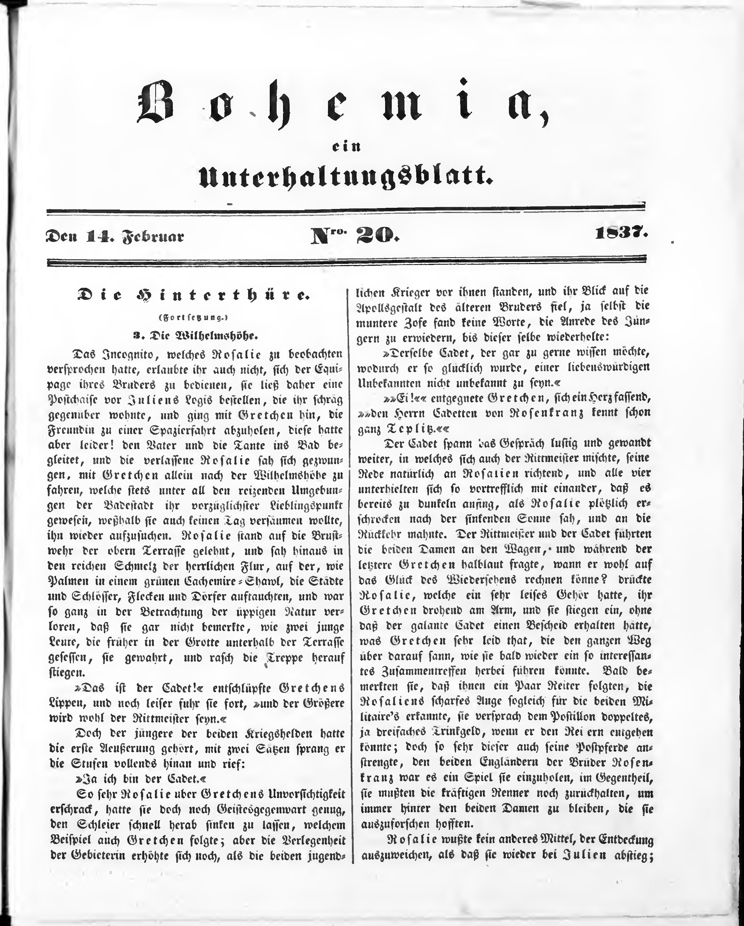 Bohemia, ein Unterhaltungsblatt