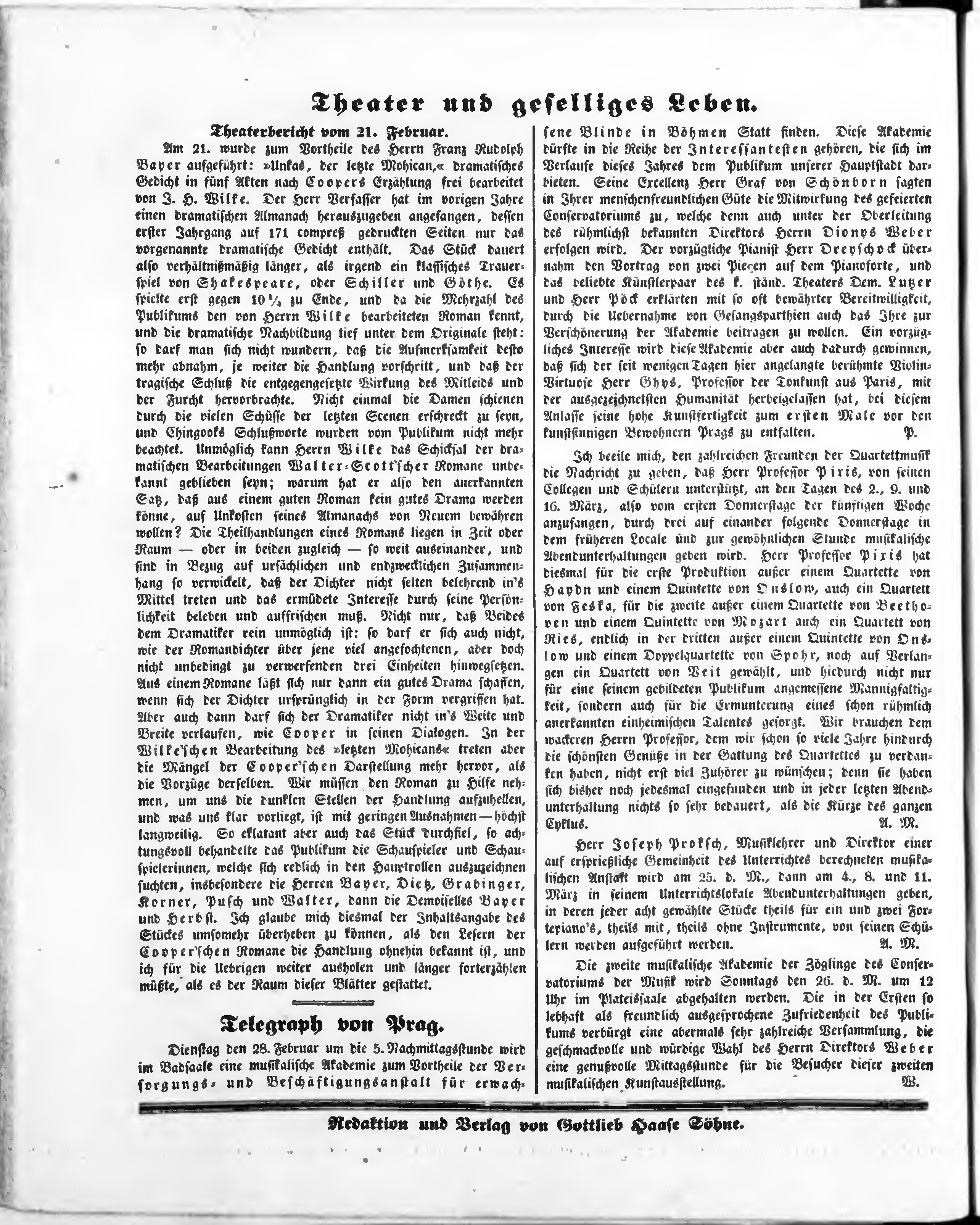 Bohemia, ein Unterhaltungsblatt