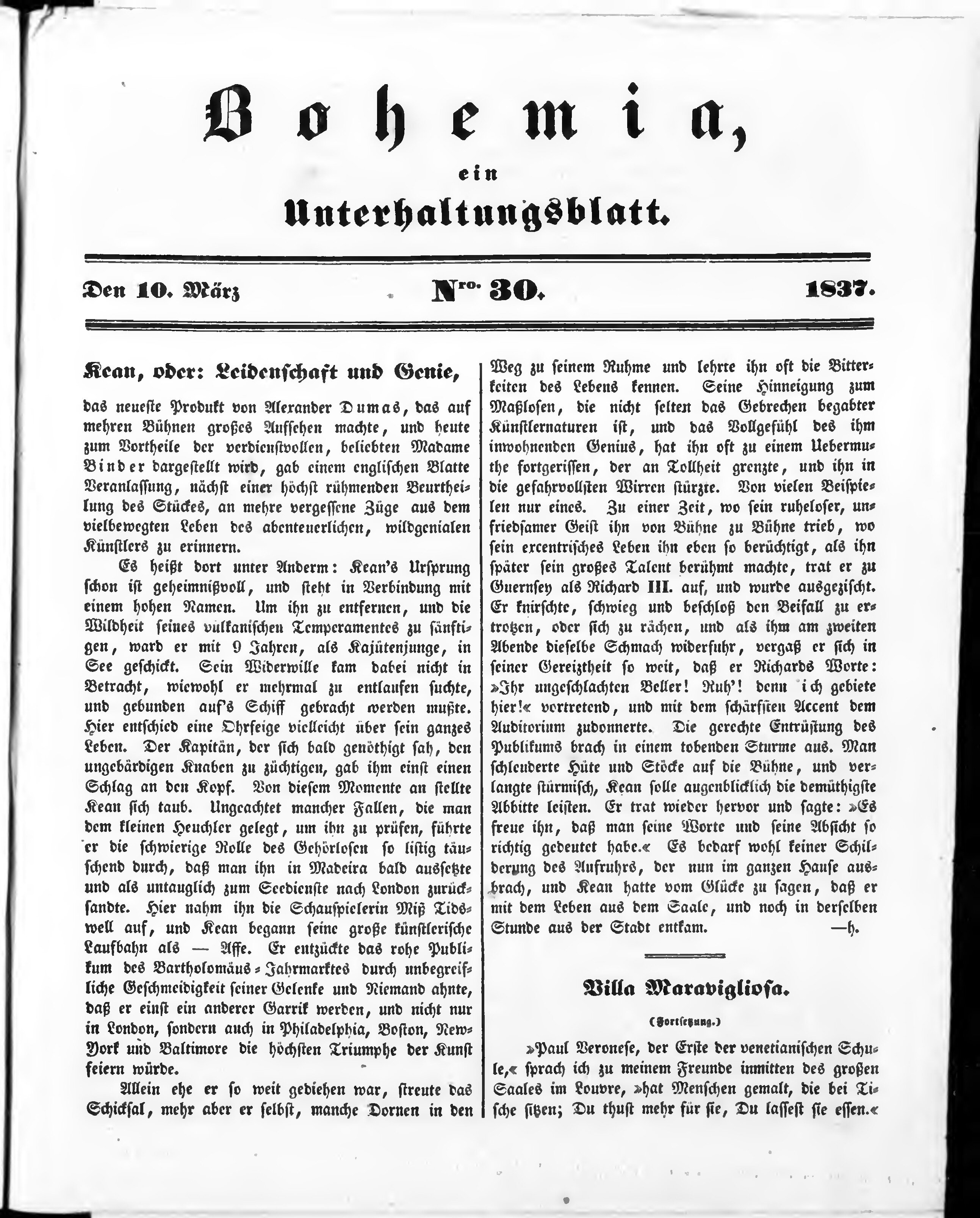 Bohemia, ein Unterhaltungsblatt