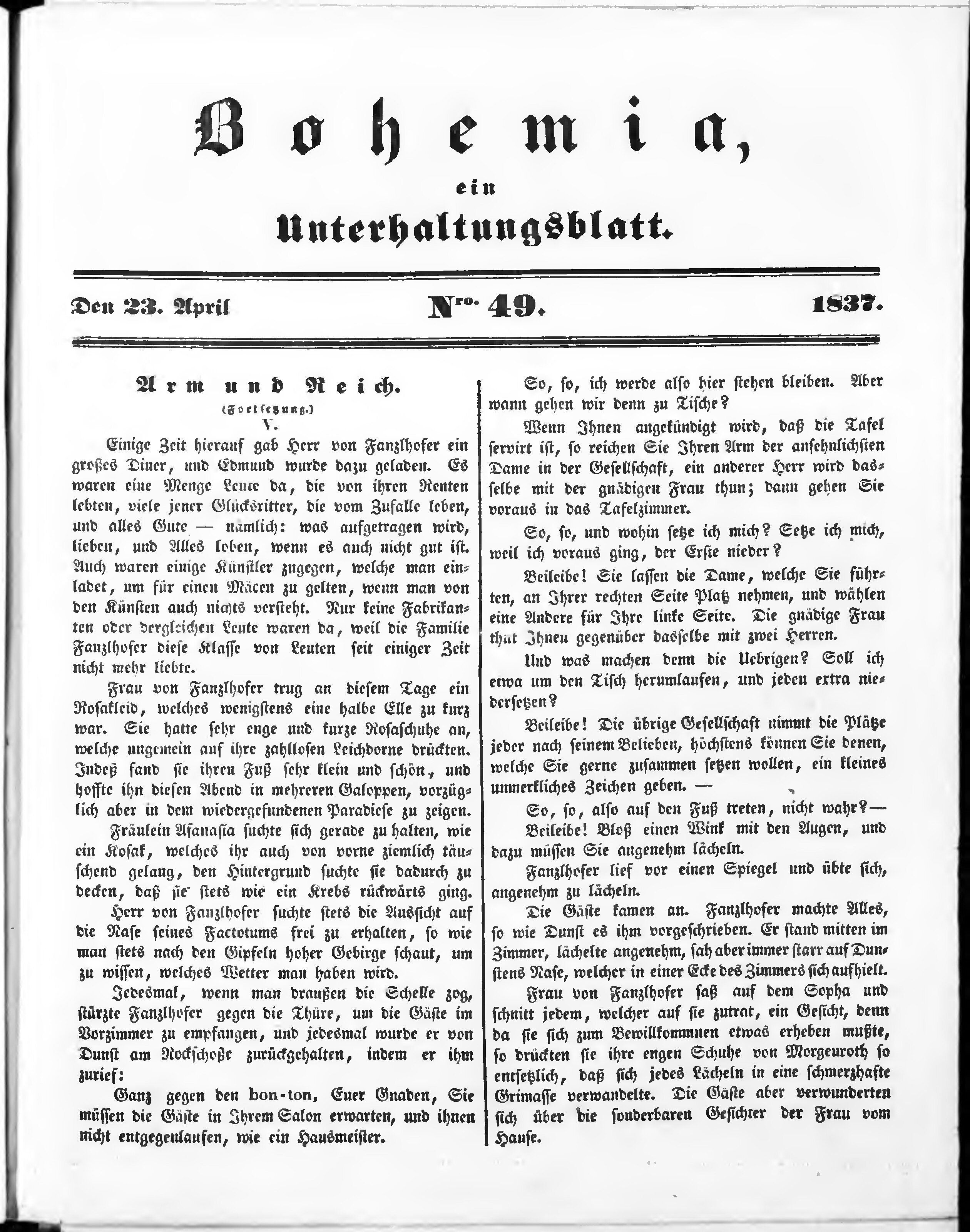 Bohemia, ein Unterhaltungsblatt