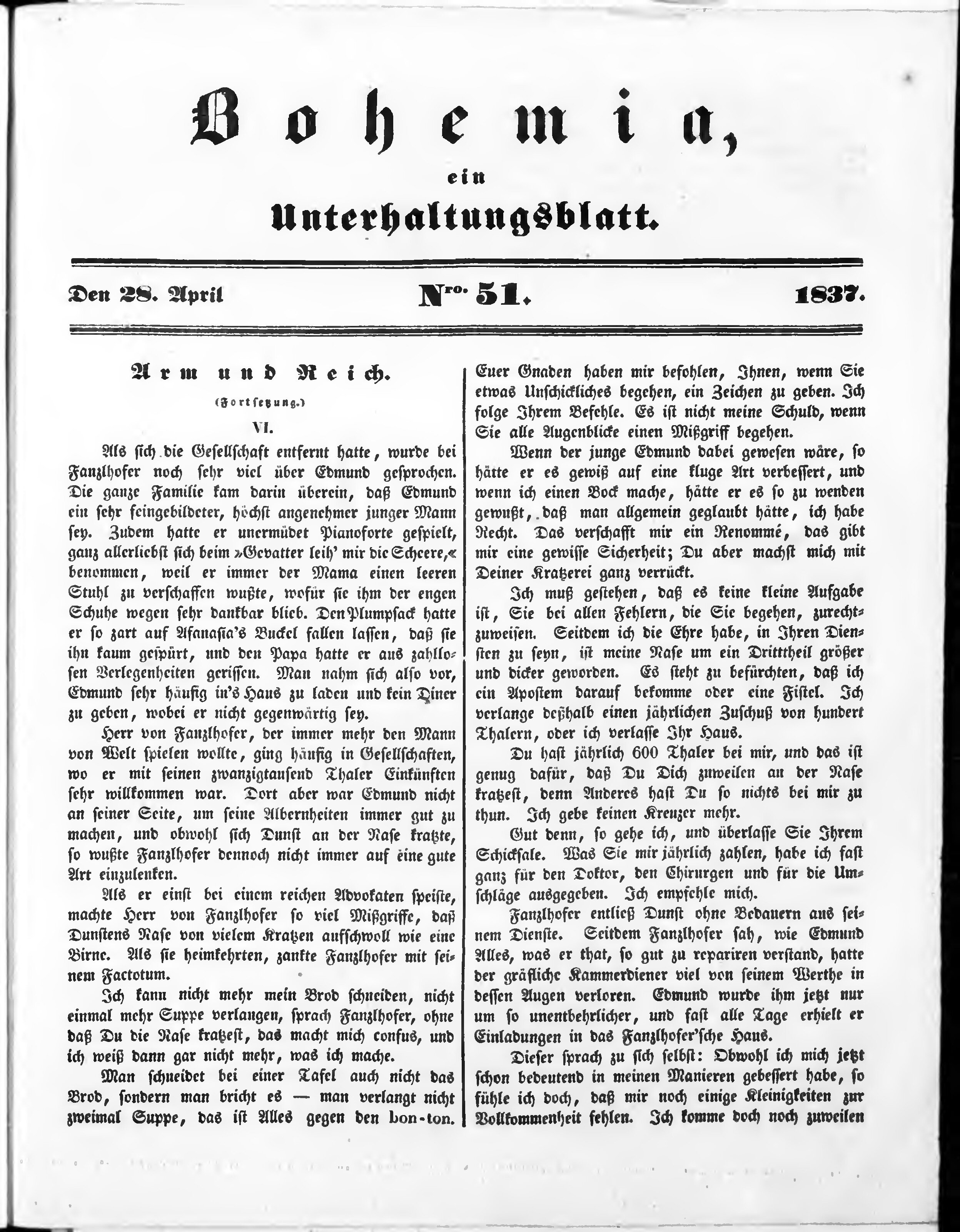 Bohemia, ein Unterhaltungsblatt