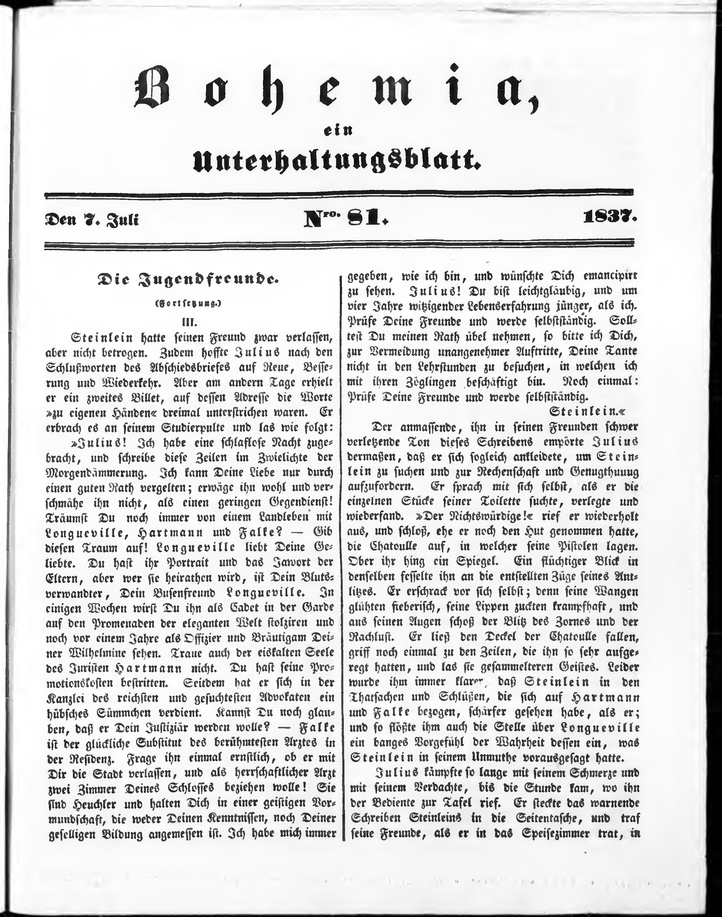 * Datum vydání výtisku: 7.7.1837 Číslo výtisku: 81