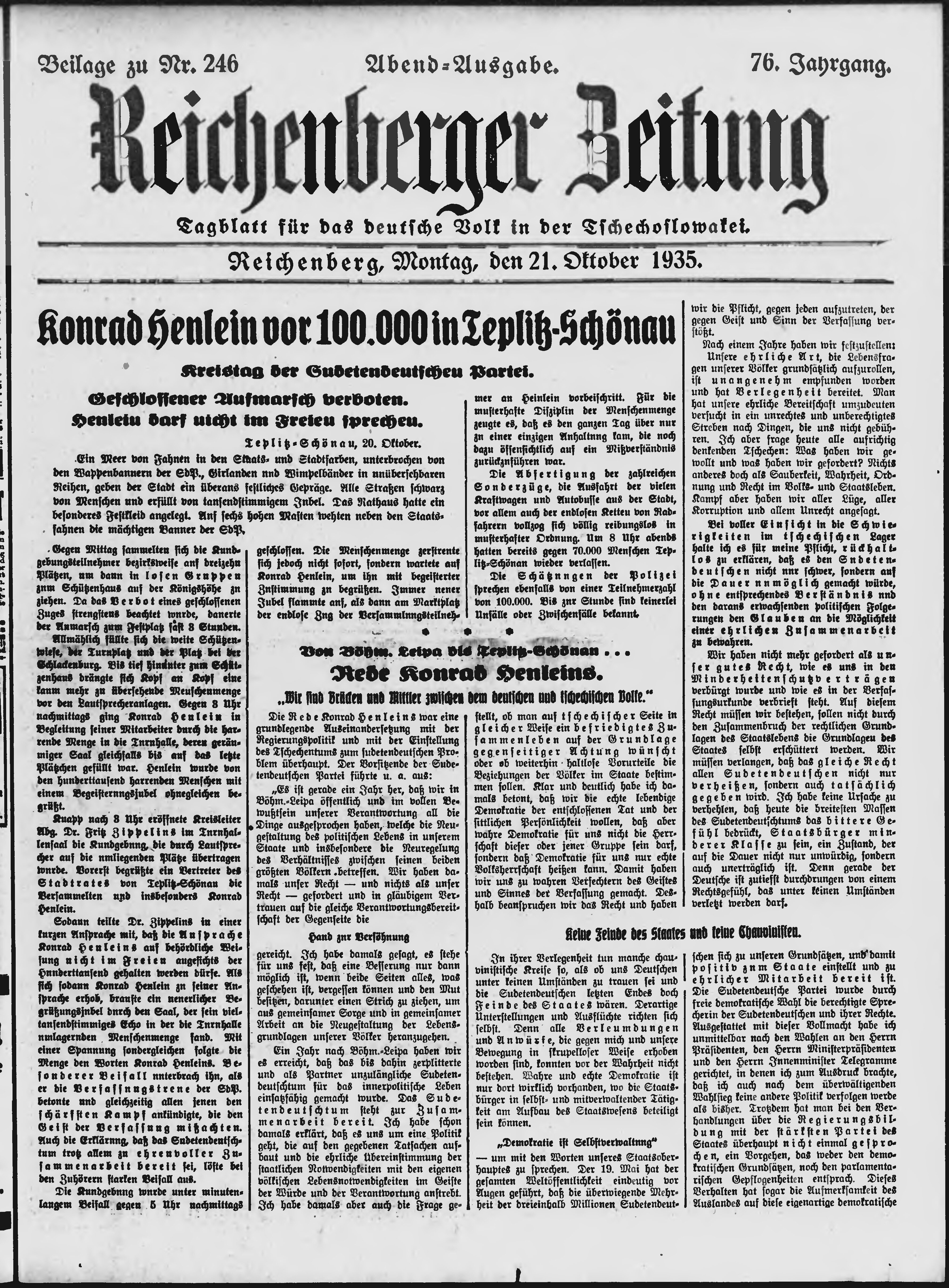 * Datum vydání výtisku: 21.10.1935 Číslo výtisku: 246 Typ výtisku: příloha Poznámky k výtisku: večerní vydání;