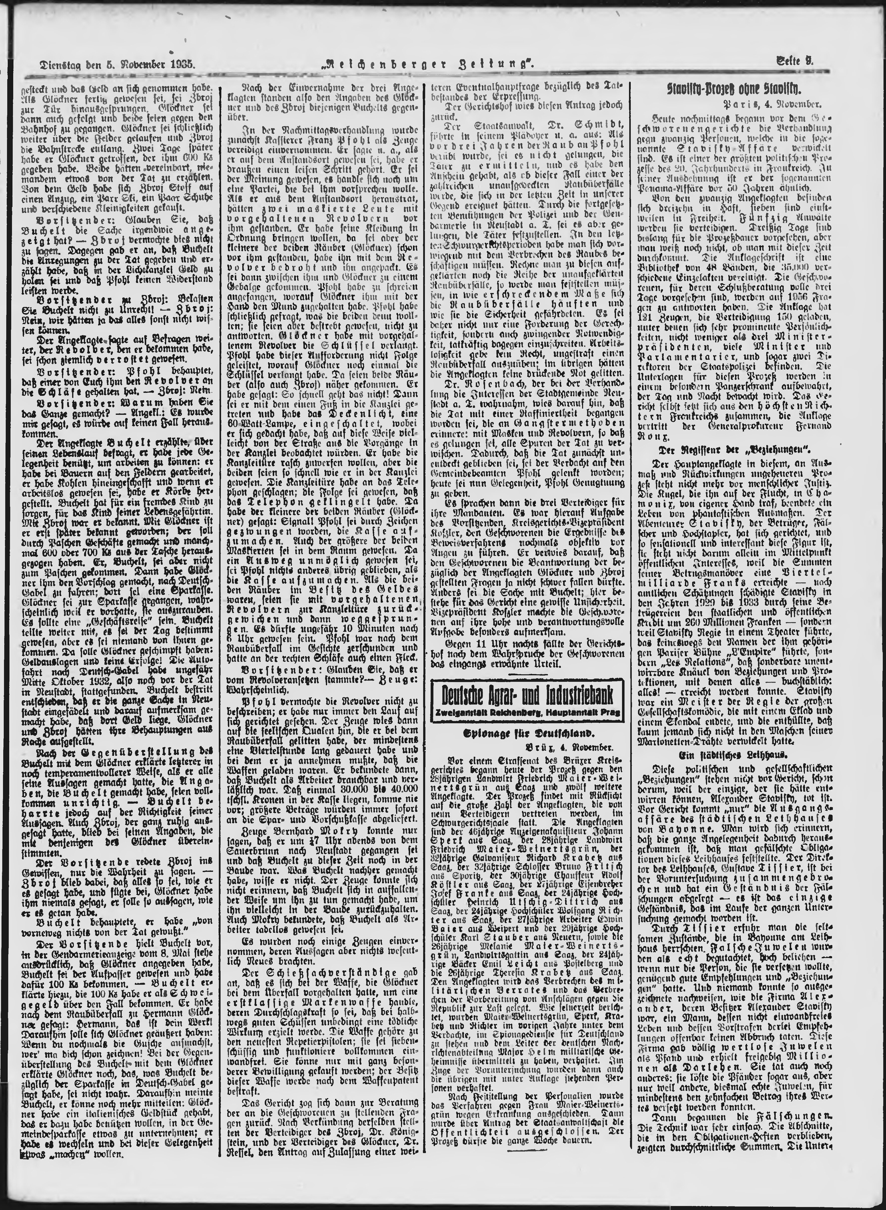 * Datum vydání výtisku: 5.11.1935 Číslo výtisku: 257 Poznámky k výtisku: ranní vydání;