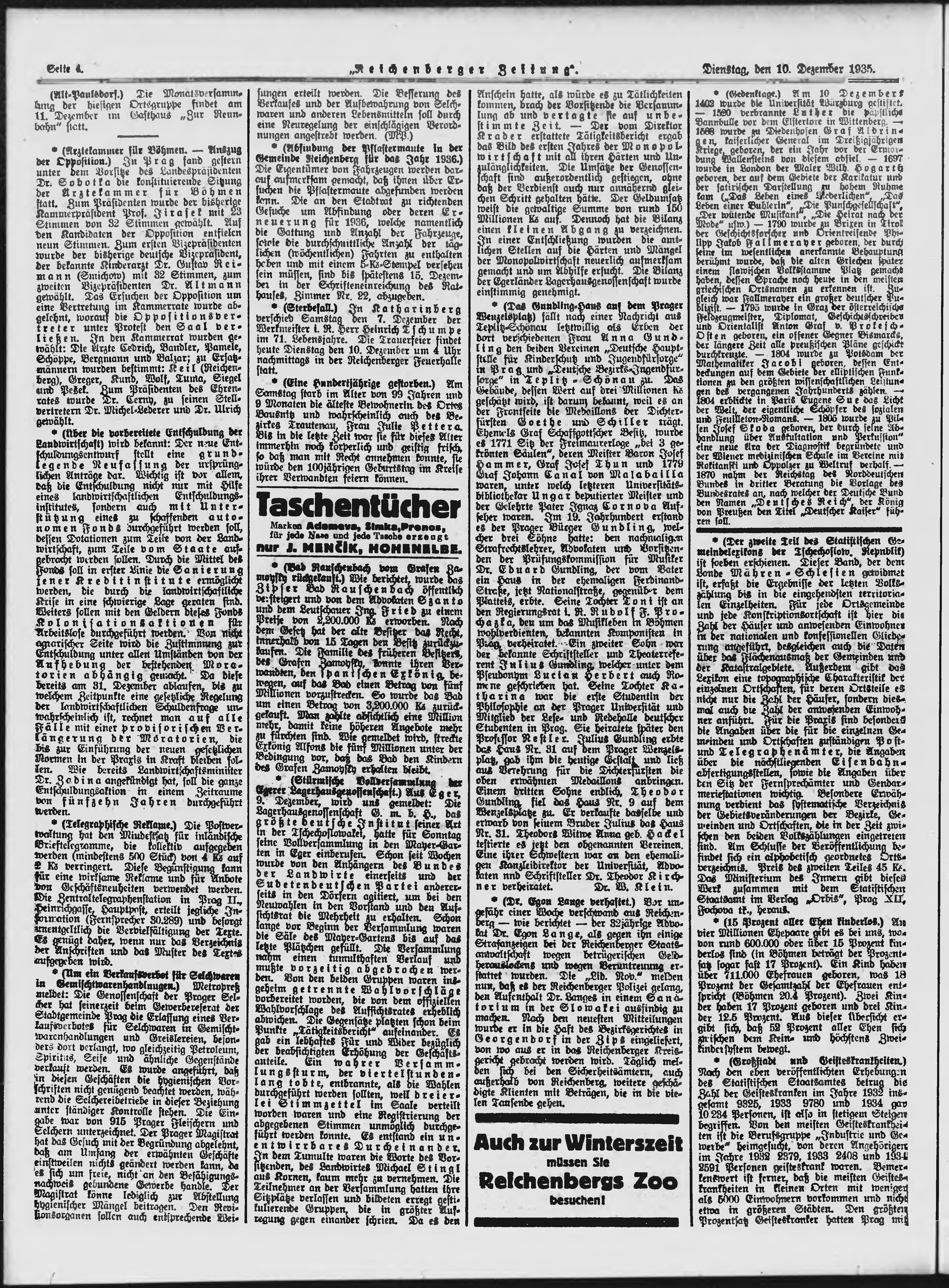 * Datum vydání výtisku: 10.12.1935 Číslo výtisku: 287 Poznámky k výtisku: ranní vydání;