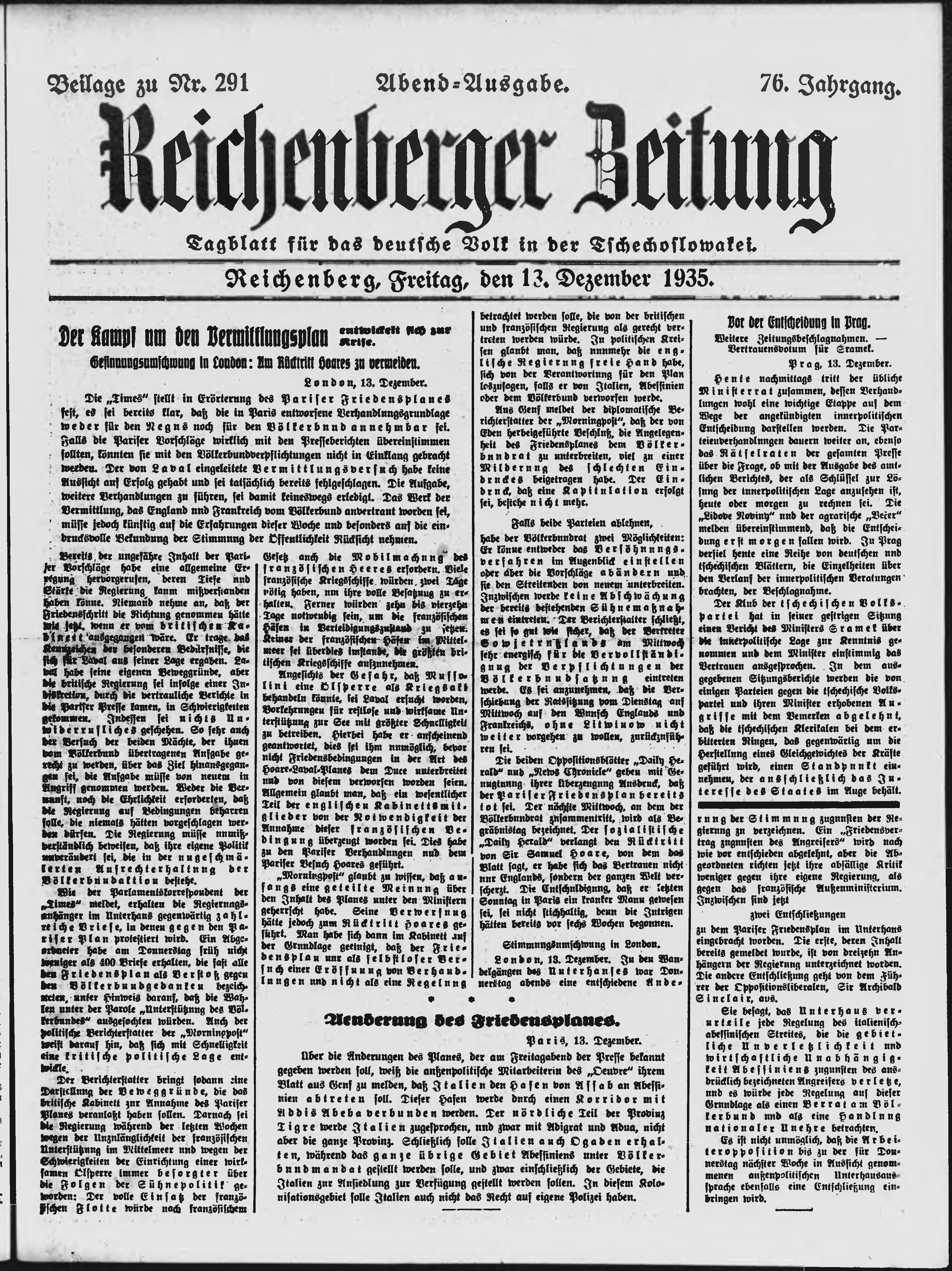 * Datum vydání výtisku: 13.12.1935 Číslo výtisku: 291 Typ výtisku: příloha Poznámky k výtisku: večerní vydání;