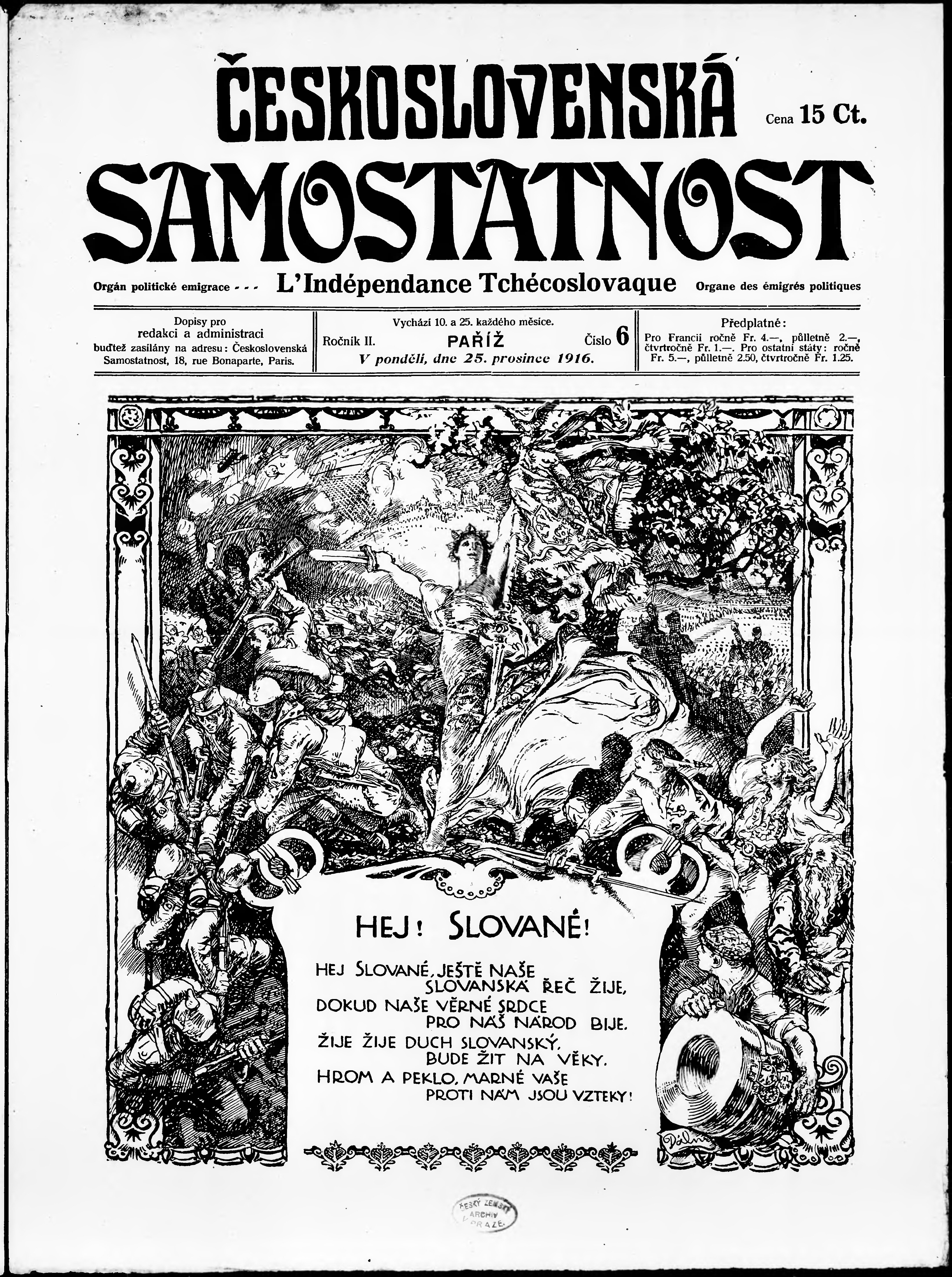 * Datum vydání výtisku: 25.12.1916 Číslo výtisku: 6