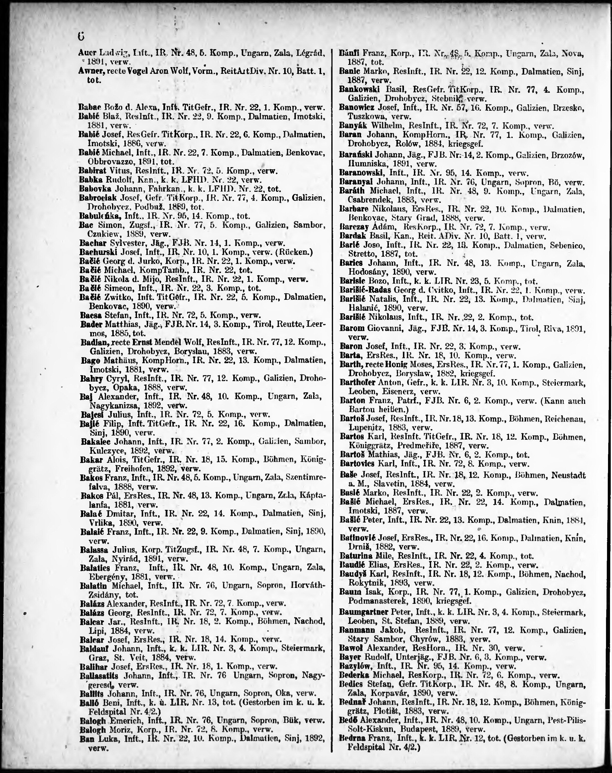 Verlustliste ausgegeben am