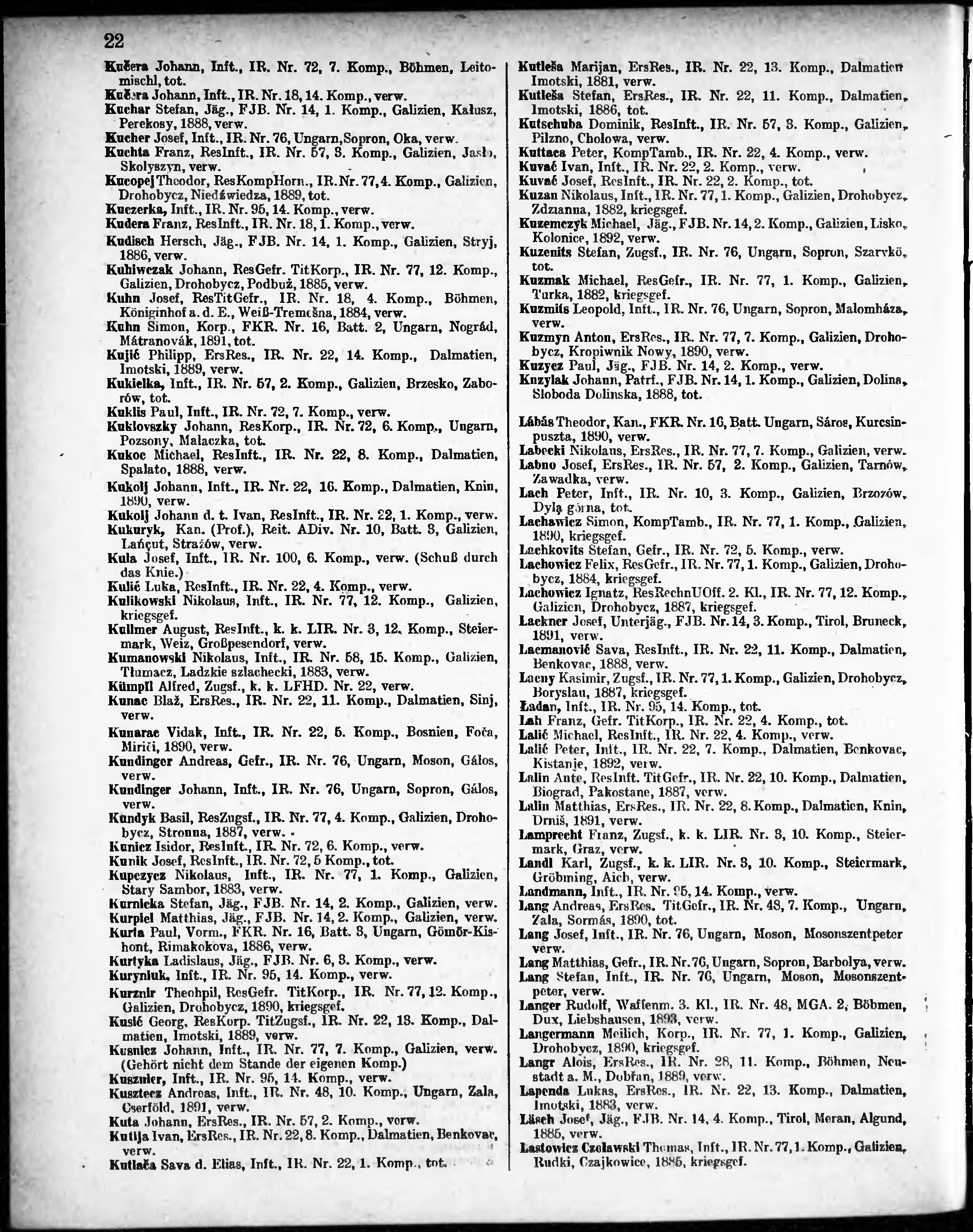 Verlustliste ausgegeben am