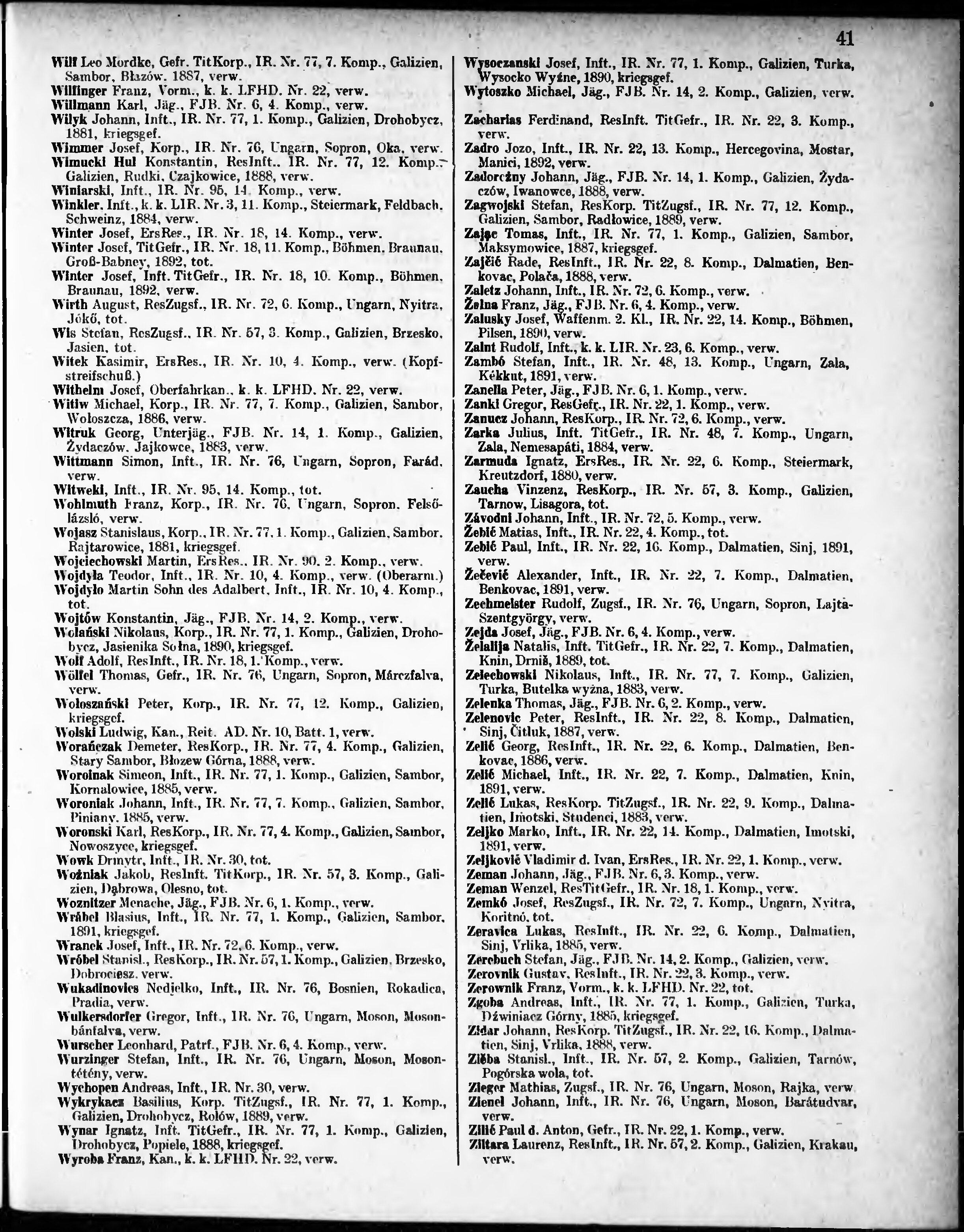 Verlustliste ausgegeben am