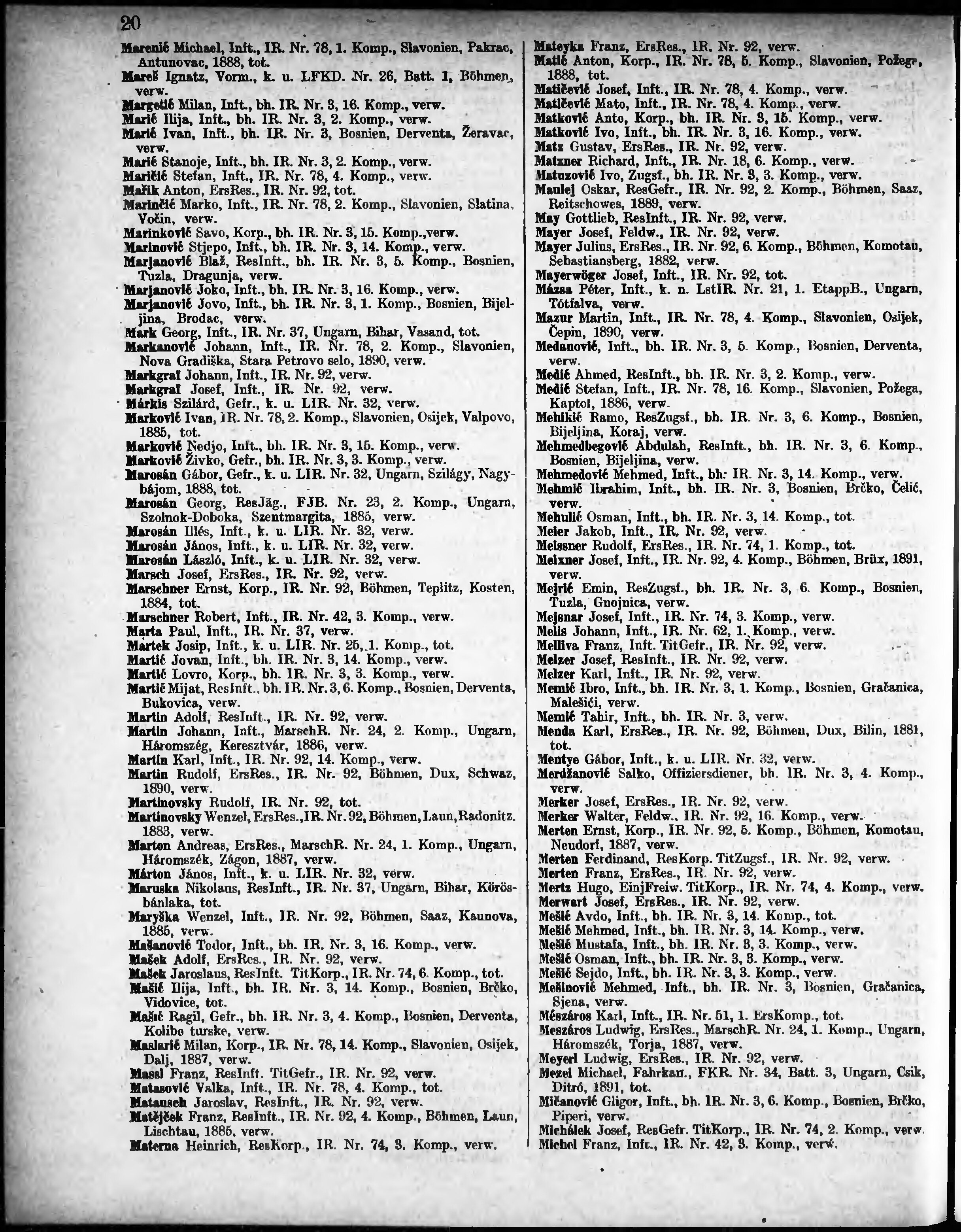 Verlustliste ausgegeben am