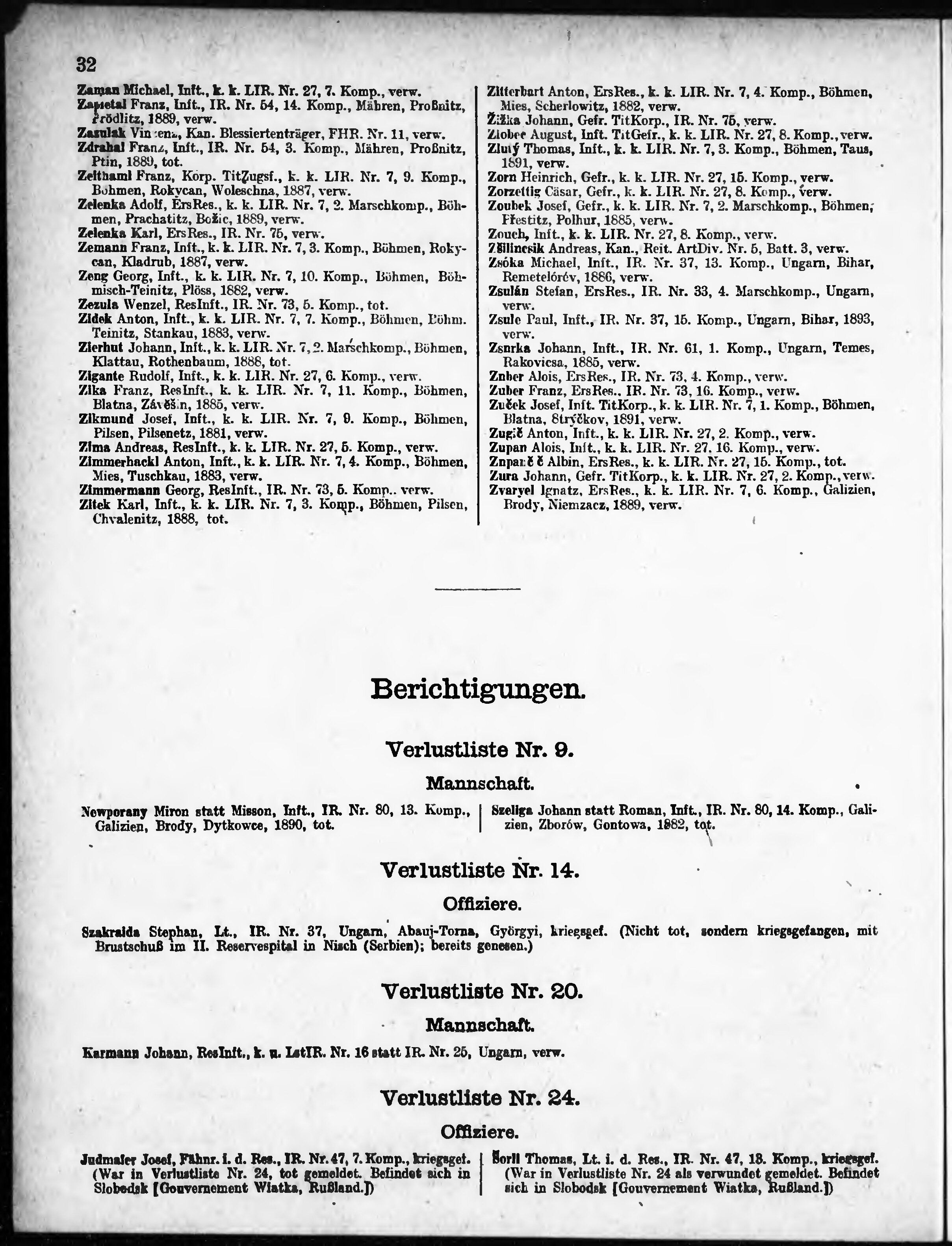 Lysta utrat vydana dnia