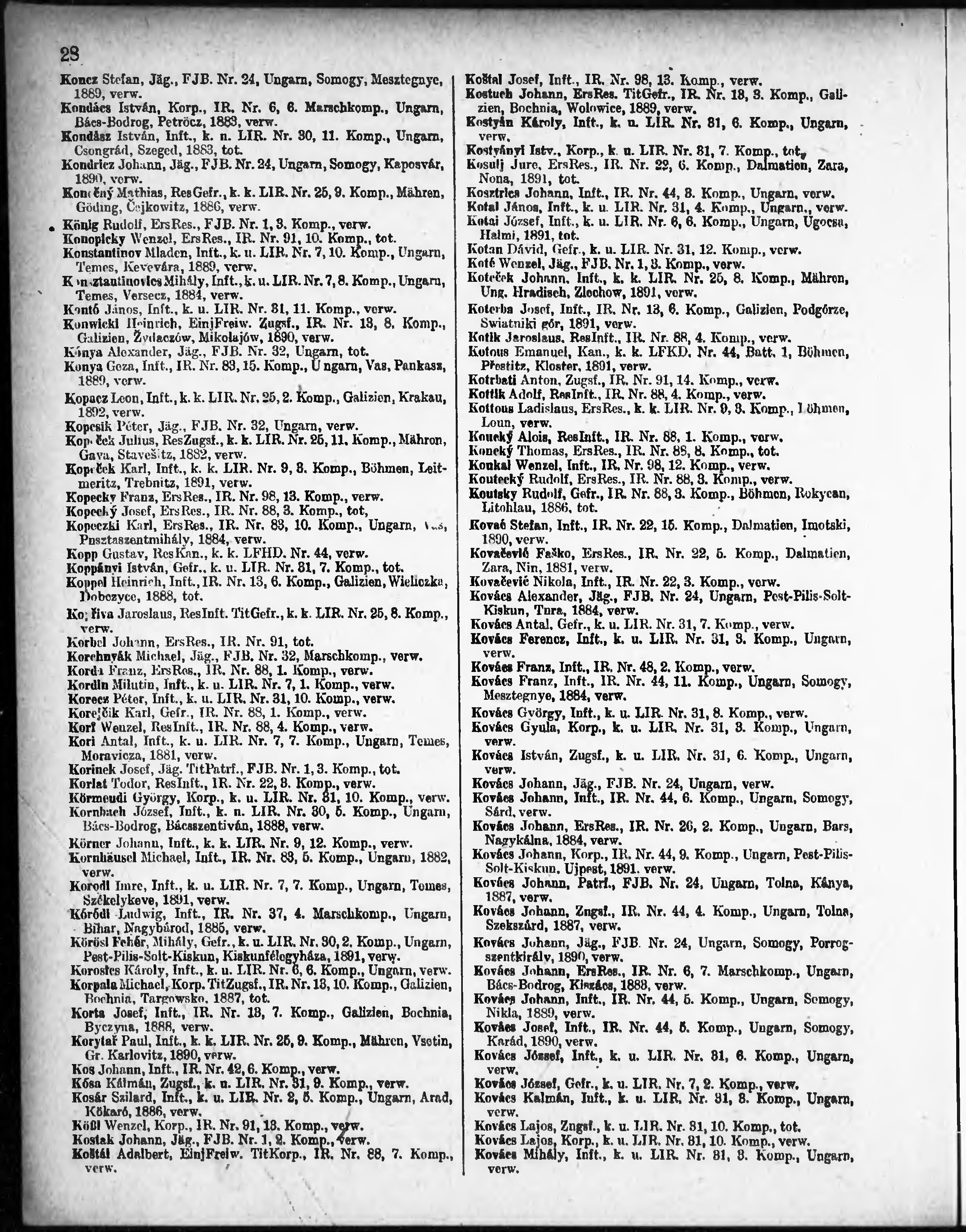 Verlustliste ausgegeben am