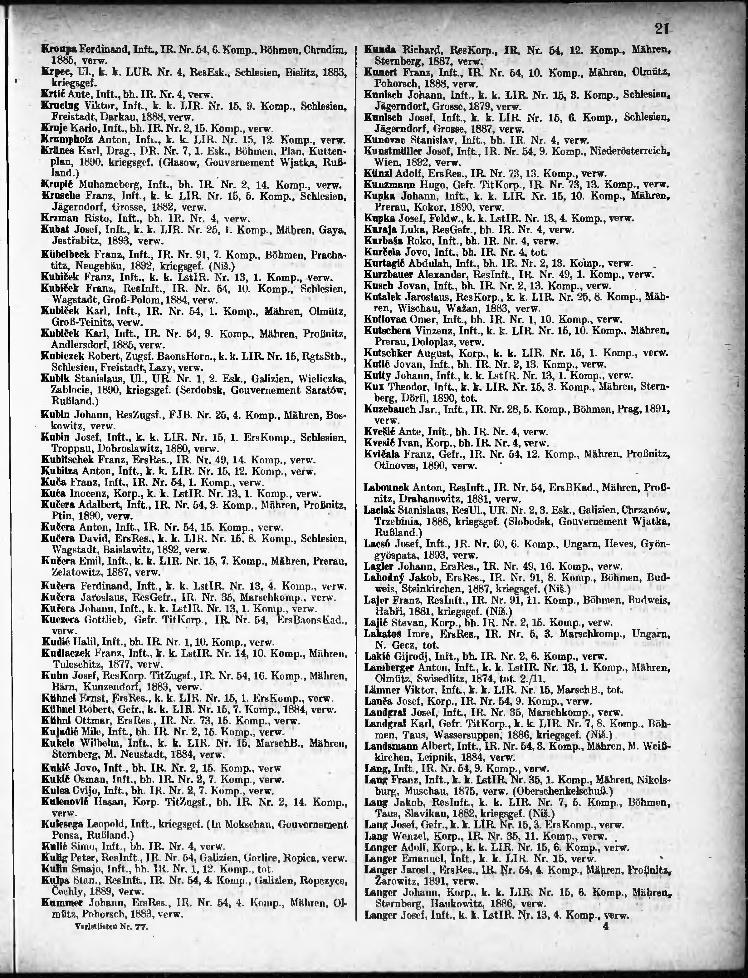 Verlustliste ausgegeben am