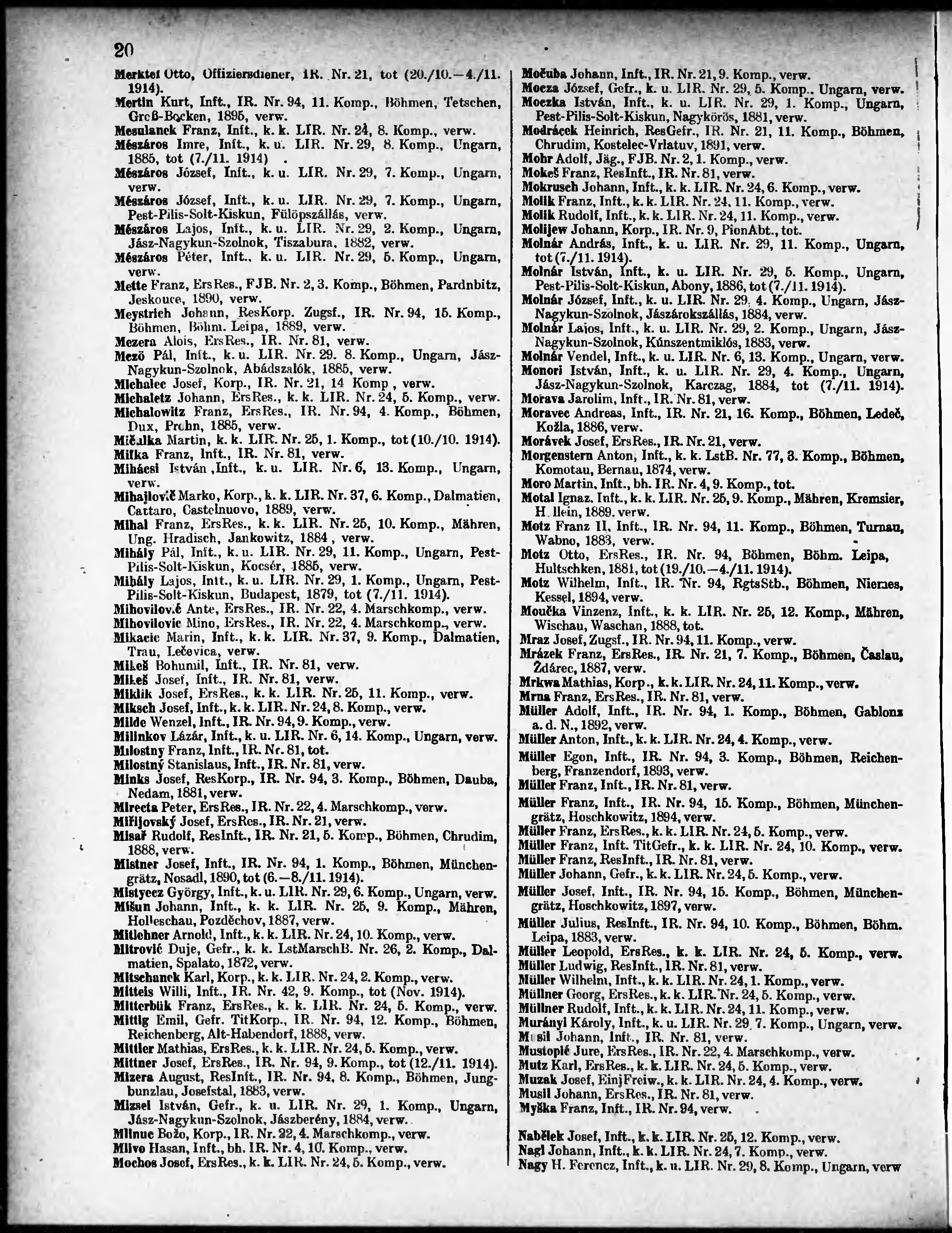 Verlustliste ausgegeben am