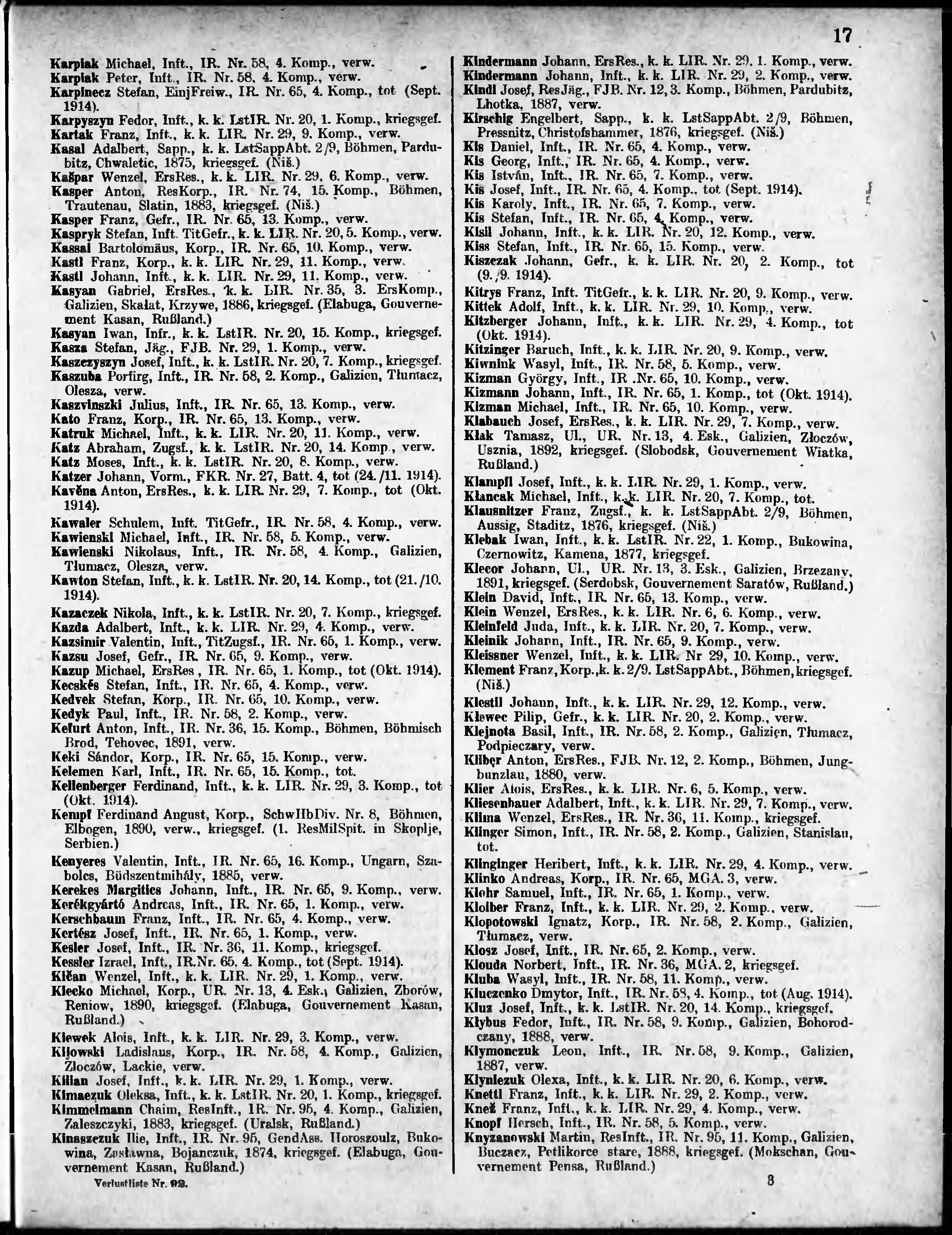 Verlustliste ausgegeben am