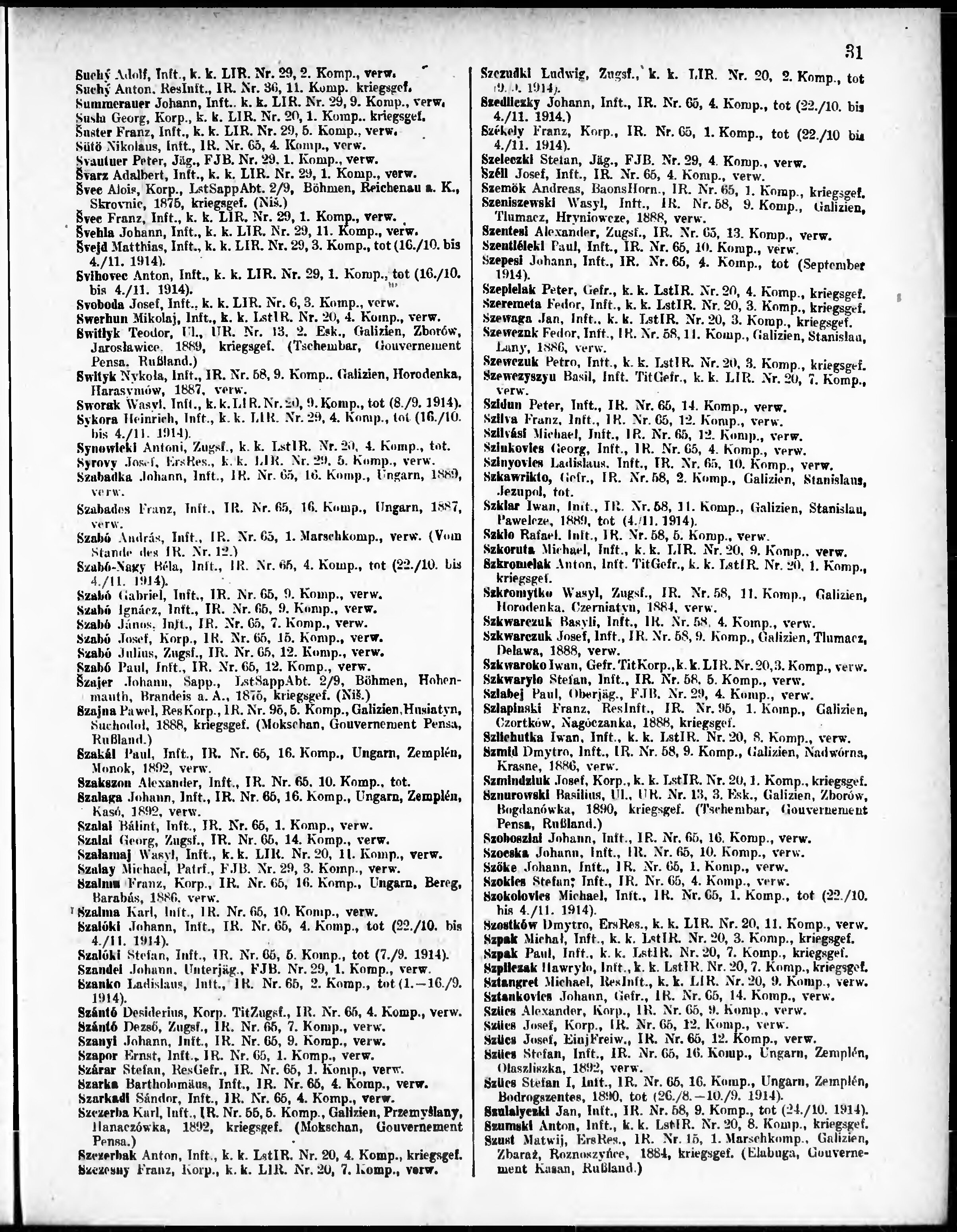 Verlustliste ausgegeben am