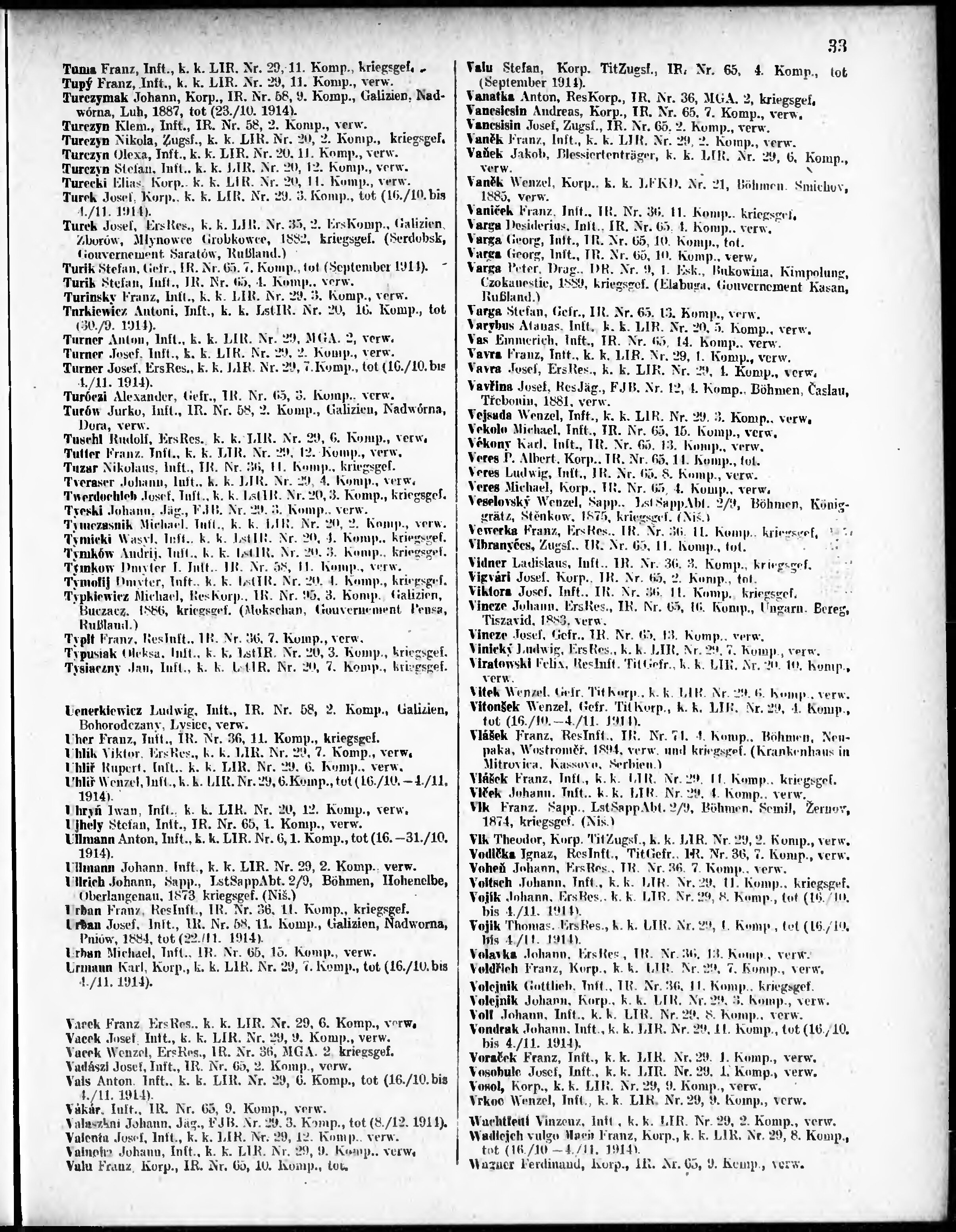 Verlustliste ausgegeben am