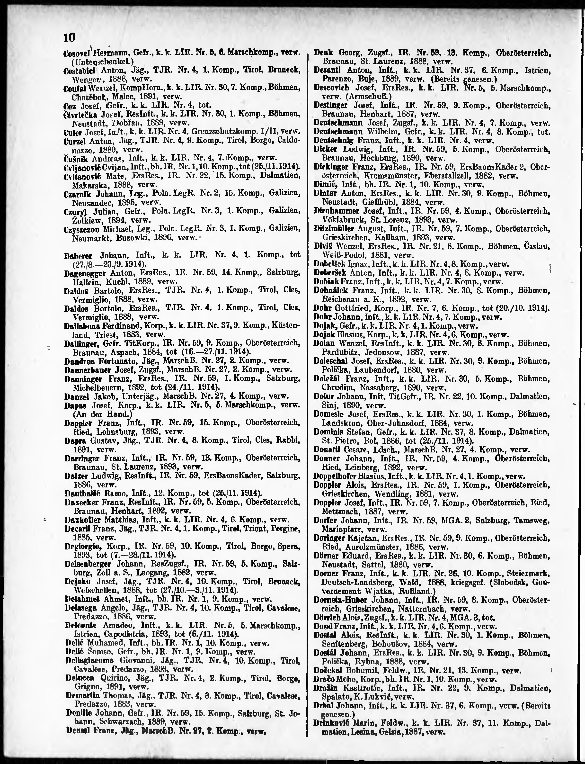 Verlustliste ausgegeben am