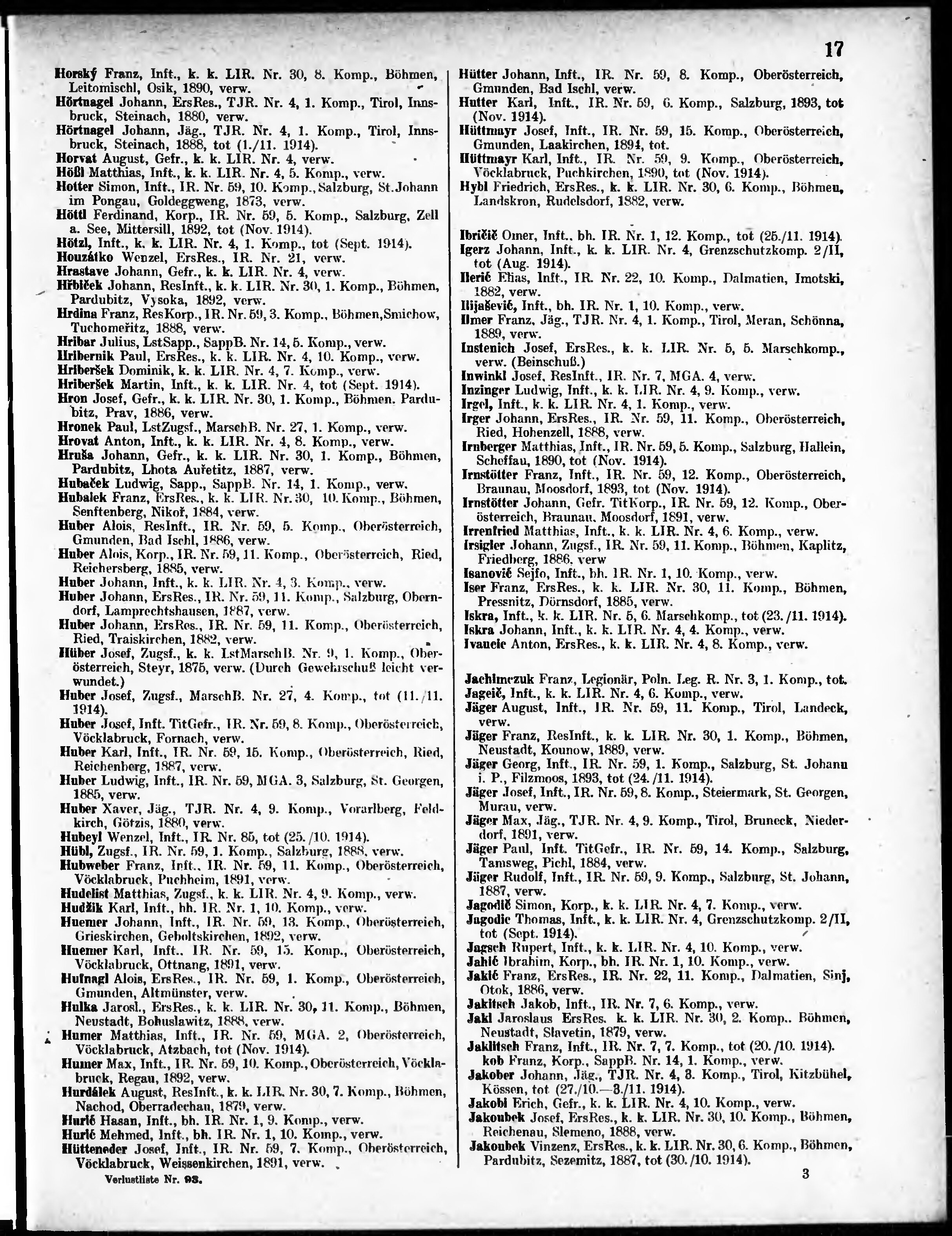 Verlustliste ausgegeben am